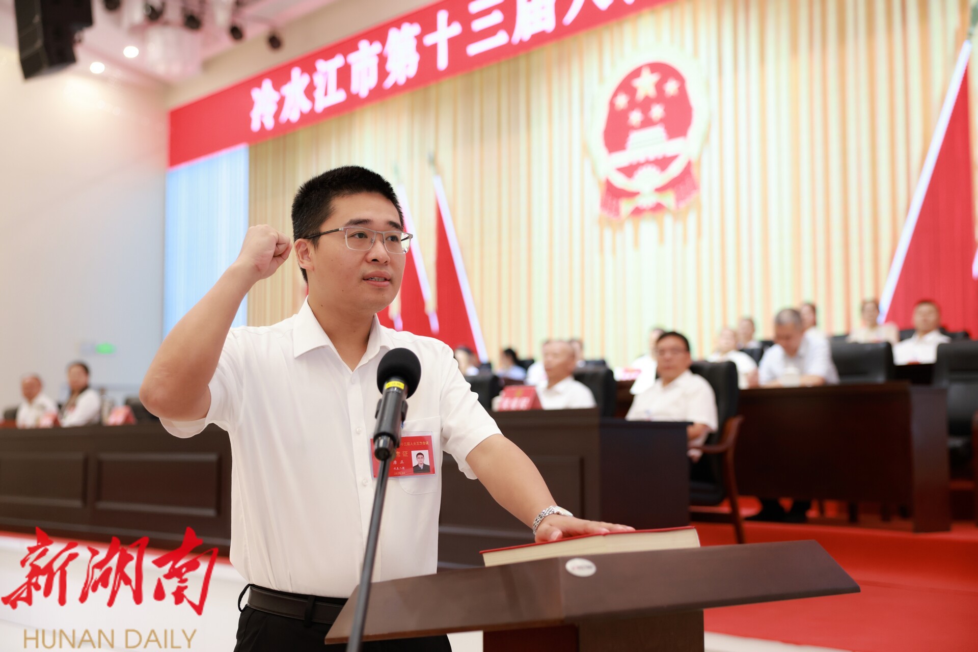 (6月14日,冷水江市十三届人大五次会议举行第三次全体会议。)