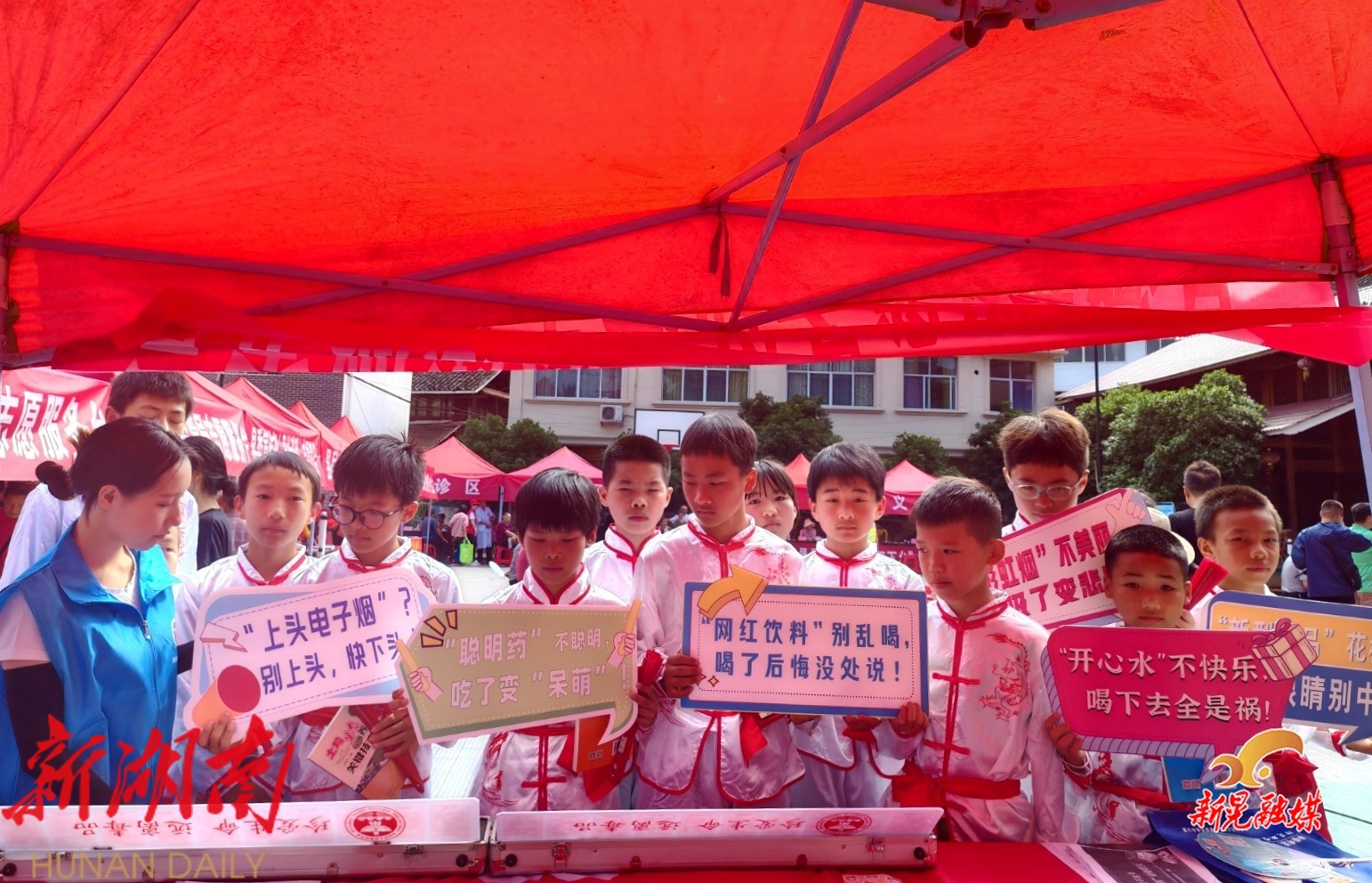 新晃融媒6月16日讯(通讯员:张武军)近日,新晃禁毒办、新晃禁毒协会、新晃微爱志愿者协会、新晃同心公益社会工作服务中心以2025年文化科技卫生“三下乡”暨社科普及主题活动周启动仪式为契机,在禾滩镇开展禁毒宣传活动。