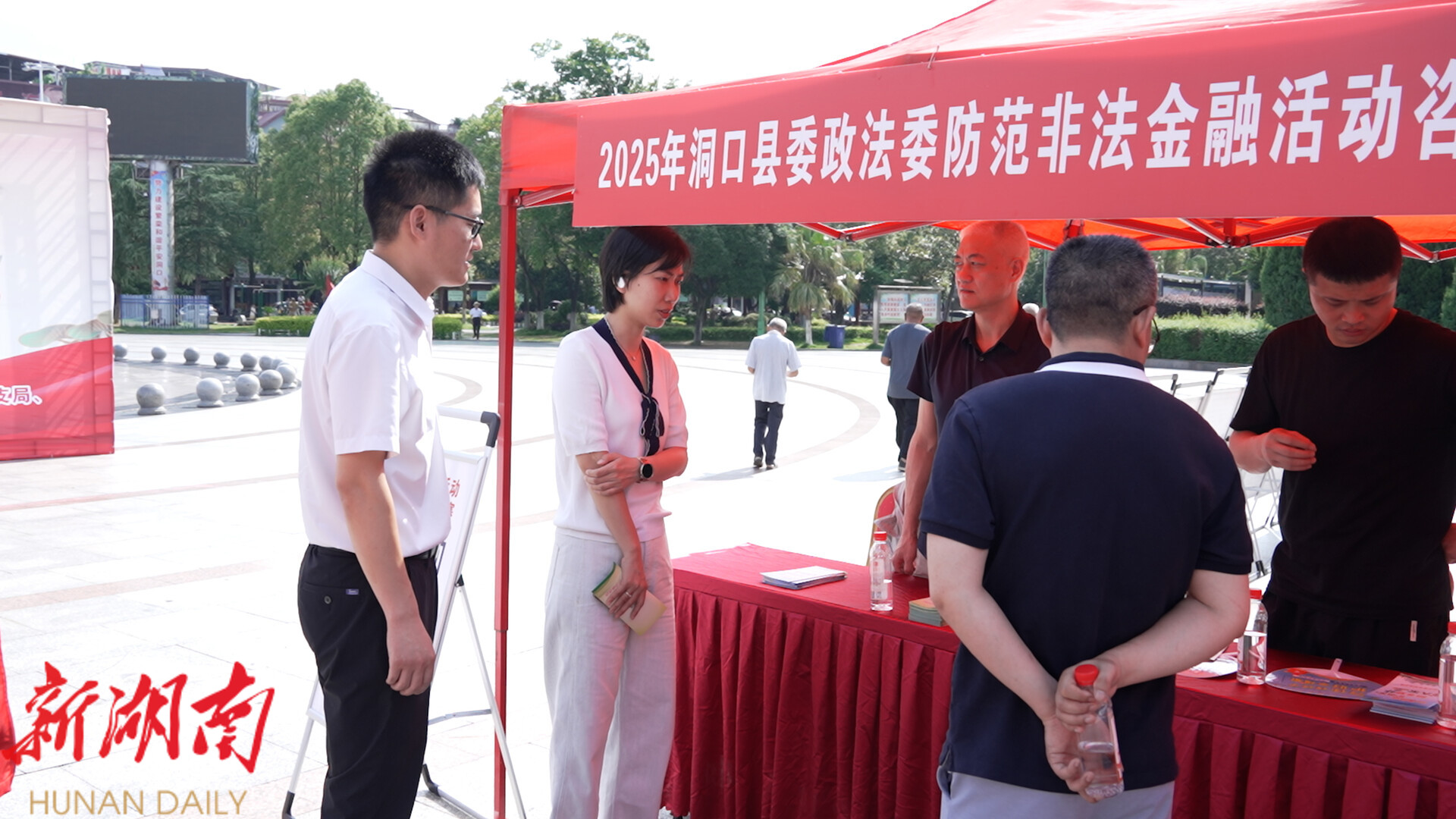 洞口融媒6月15日讯 (记者:林巍浩 肖皓静) 6月15日,洞口县围绕“守住钱袋子・护好幸福家”主题,开展防范非法金融工作集中宣传活动,进一步提升公众对非法集资等非法金融活动的认知,增强风险防范意识,切实保护广大市民的合法权益。副县长张胜男出席活动。