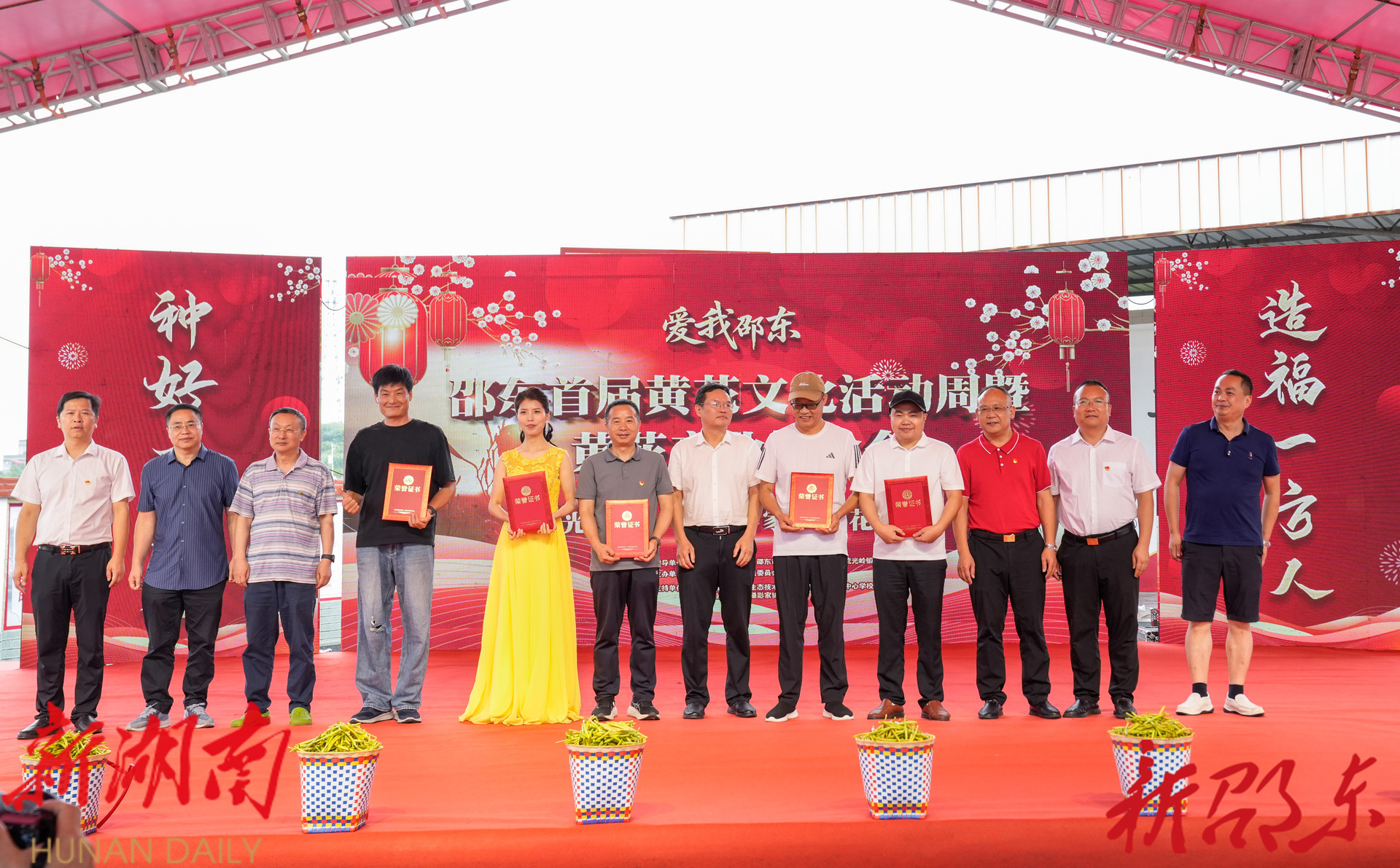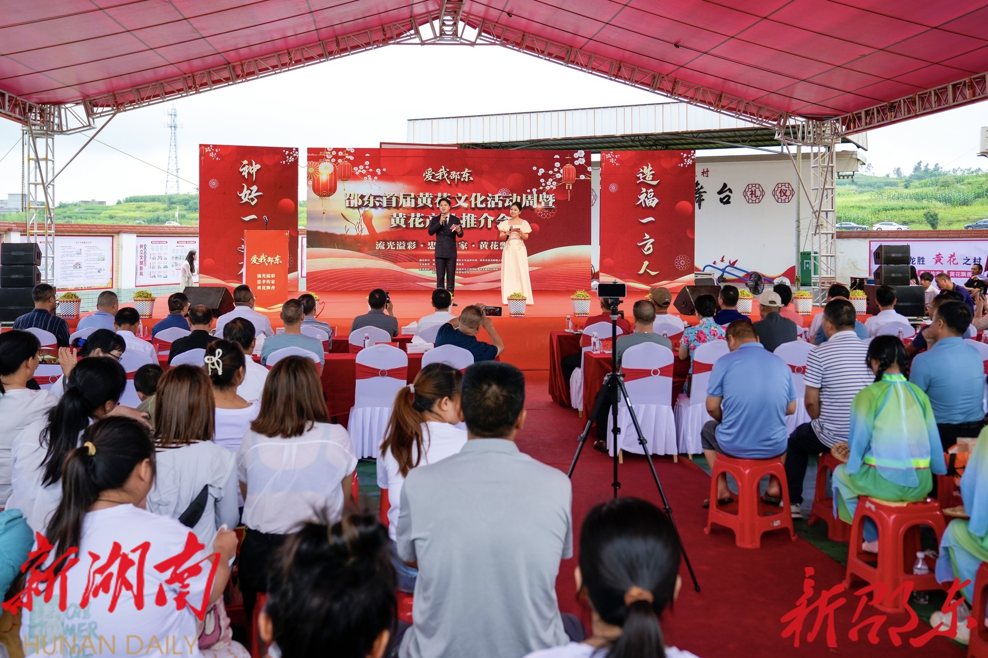 新邵东客户端6月15日讯(记者 刘意忠 谢润新 通讯员 刘凯舟 申彬) 6月15日,邵东市首届黄花文化活动周暨黄花产业推介会在流光岭镇龙胜村举行。市领导黄负平、罗健康、曾铁钧、郭竟成以及市文旅广体局、农业农村局负责人、主要社会团体负责人等出席。近3000名社会热心人士和群众观摩了这一活动。