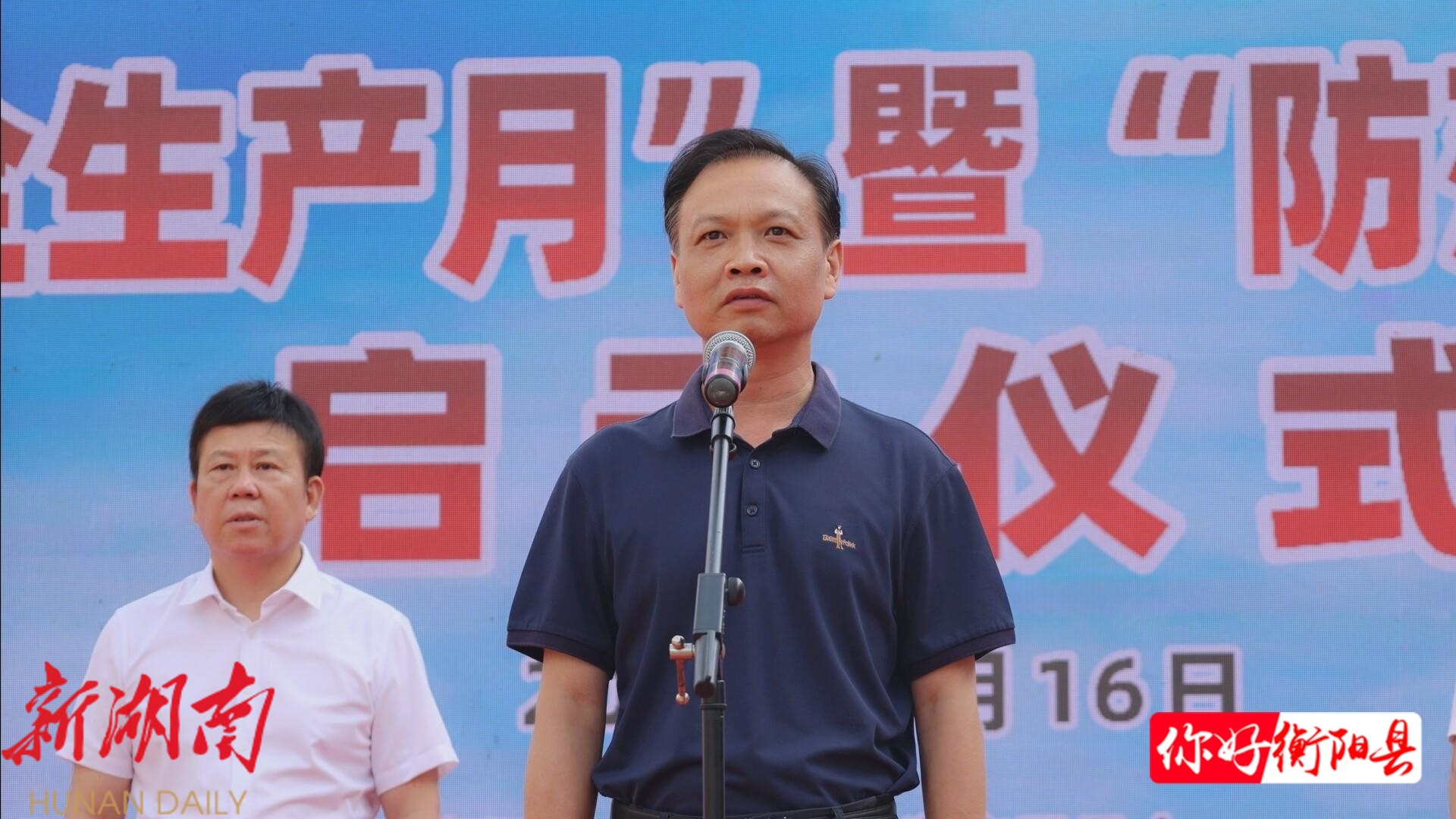 在夏明翰广场,杨峰宣布全县“安全生产月”暨“防范非法集资宣传月”活动正式启动。