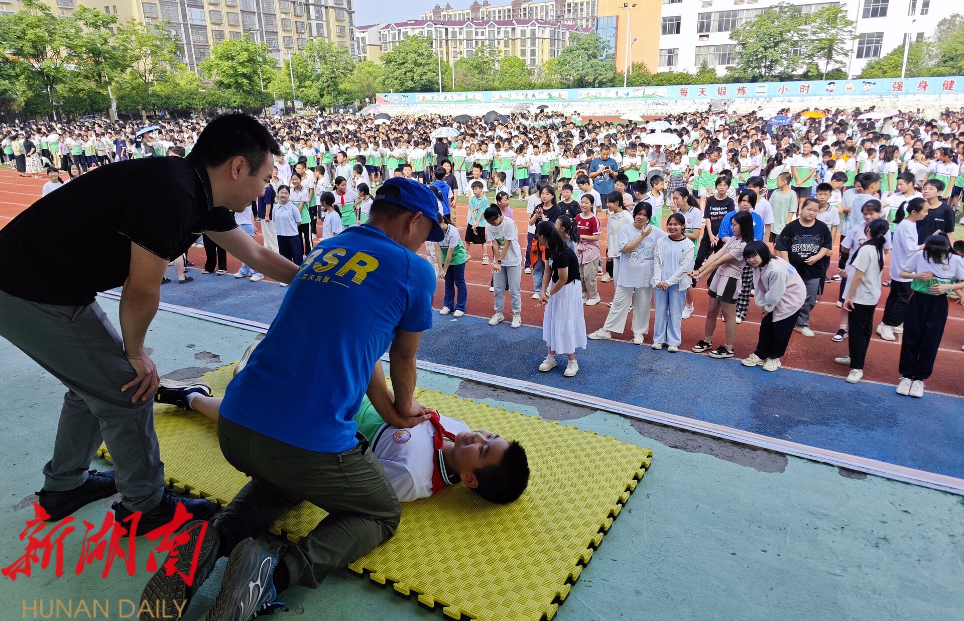 新湖南客户端6月16日讯(通讯员 刘宾 李红庆)6月16日,东安县舜德学校开展防溺水急救知识培训。