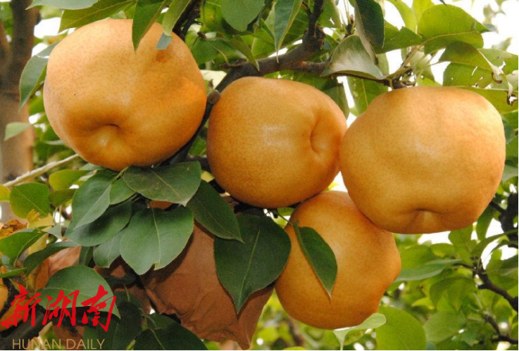 圆黄梨:圆润身姿,金黄外衣。得益于大围山充足的阳光与昼夜温差,果肉雪白细嫩至极,酥脆化渣,汁液充沛,香气诱人!(采摘时间:7月20日—8月5日)