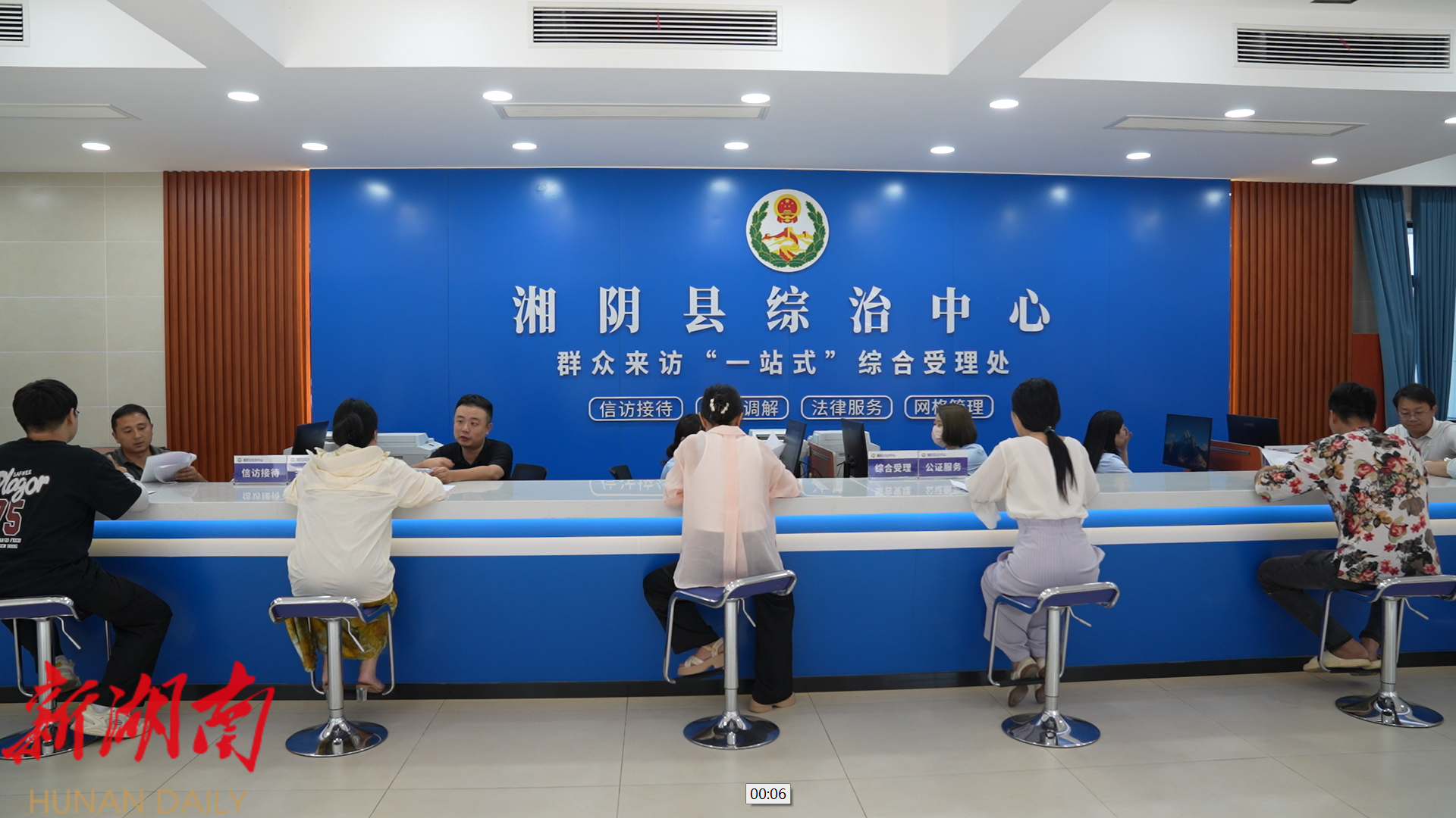 在焕然一新的湘阴县综治中心,“有矛盾纠纷,找综治中心”的承诺格外醒目。中心设置接访受理分办、矛盾纠纷调解、涉法涉诉服务、维稳指挥调度四大功能区,15家常驻部门与10家轮驻(随驻)部门协同办公,并整合“两代表一委员”“解纷群英”等社会力量集中攻坚,群众无论是遇到婚姻家庭纠纷、邻里矛盾、劳资争议,还是需要法律咨询、信访诉求、心理疏导,只需踏入中心大门,即可获得“一站式”响应。