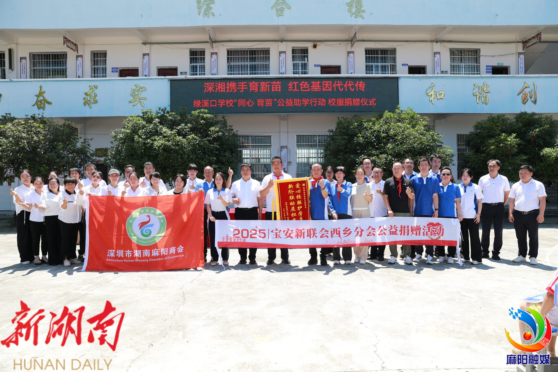 活动期间,宝安西乡新联会成员走进麻阳非遗体验基地——霞飞云果园,参与非遗技艺互动教学,感受麻阳深厚的民族文化底蕴。在绿溪口中学“同心·育苗”公益助学行动中,宝安西乡新联会向学校捐赠200套校服、300多套文具,传递深湘两地情谊。