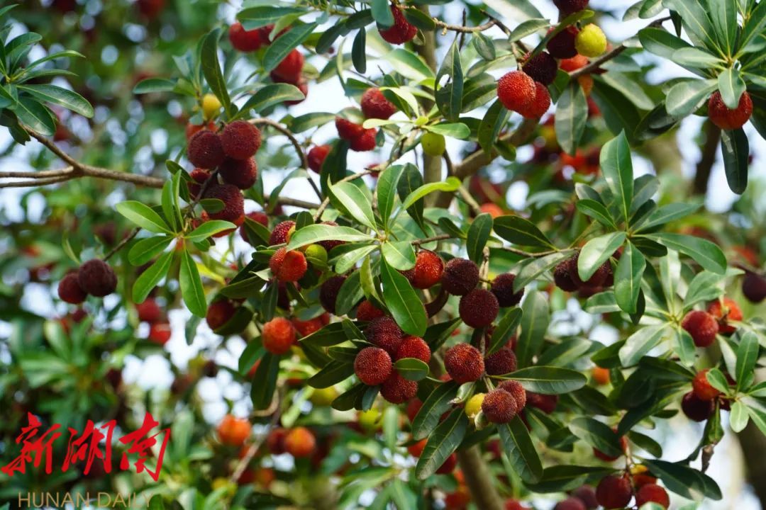 一颗颗果形圆润饱满的杨梅挂满枝头