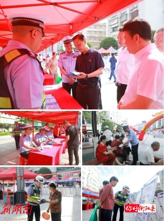 衡阳县融媒6月17日讯(通讯员 :凌零 黄敏 颜娴 ) 今年6月是第24个全国“安全生产月”,为进一步提升群众交通安全意识和文明出行意识,6月16日,衡阳县公安局交警大队以“人人讲安全 个个会应急——查找身边安全隐患”为主题,在夏明翰广场参加“安全生产月”交通安全咨询及现场宣教活动。