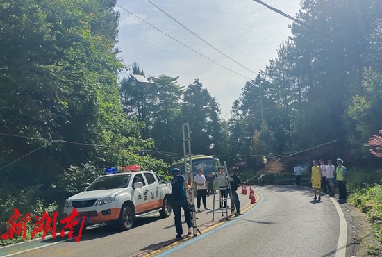 湖南日报·新湖南客户端6月15日讯(通讯员 李文定 屈泽清)6月15日清晨,受梅雨季节强风影响,武陵源区插梓公路抗金岩村至龙尾巴居委会路段一根水泥线杆突然倾倒,致使两根总长90米的跨路光缆滑落至路面。事发路段正值前往核心景区东南门(梓木岗)门票站的交通要道,5辆满载游客的旅游大巴被阻滞,行程被迫延误。