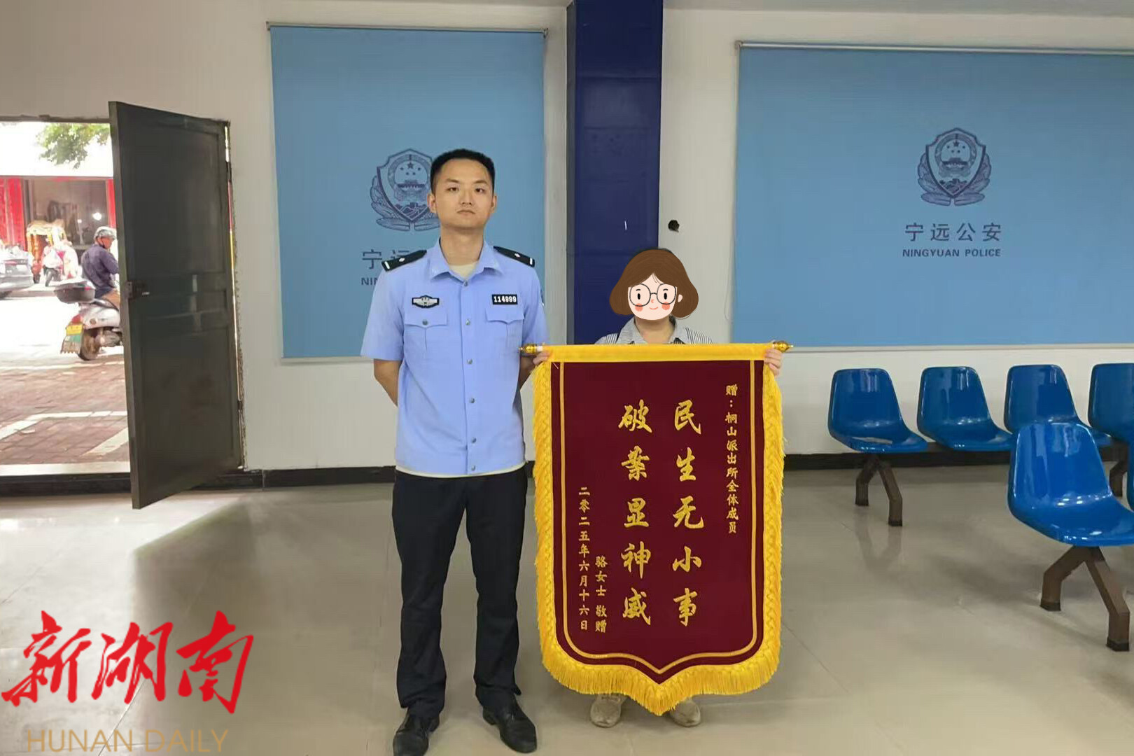 湖南日报·新湖南客户端6月17日讯(通讯员 刘孟娟) 近日,宁远县公安局桐山派出所快速侦破一起便利店槟榔盗窃案。失主骆女士专程将一面印有 “民生无小事 破案显神威” 的锦旗送到派出所,对民辅警高效追赃挽损表达诚挚谢意。