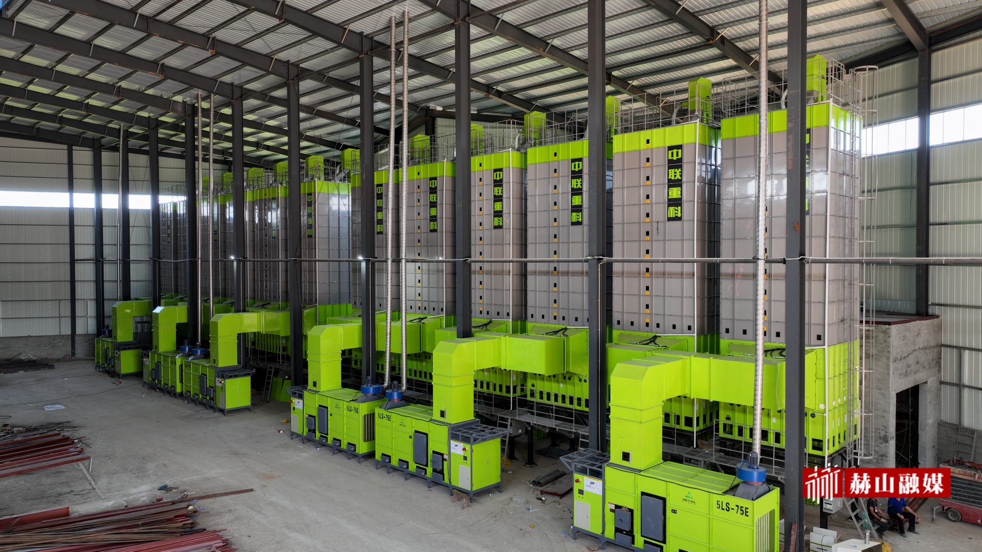 项目现场,工人们正热火朝天地投身于设备安装与车间清洁工作中,为后续顺利投产打下坚实基础。据了解,该项目于去年4月动工,预计总投资 1.27 亿元,主要新建钢结构厂房1栋,新修产学研科技楼1栋。项目建设内容包括中联重科 30 吨标准烘干炉 12台,配套全数据智能烘干监控、操作平台1套,全数据智能干湿稻谷仓储流转监控、操作平台1套,可提供水稻烘干服务,服务范围覆盖全镇并辐射至临近乡镇。