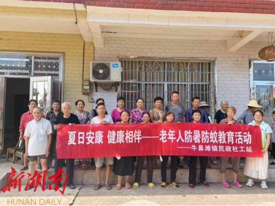 鼎级传媒客户端6月17日讯(通讯员 云姚)为增强老年人在夏季健康防护能力,更好推进“一站一品”之“银龄守护”农村独居老人健康守护计划,近日,在鼎城区民政局的指导下,恒德社工驻牛鼻滩民政社工站携手镇新时代文明实践所在濠洲村开展“老年人防暑防蚊健康宣传活动”。