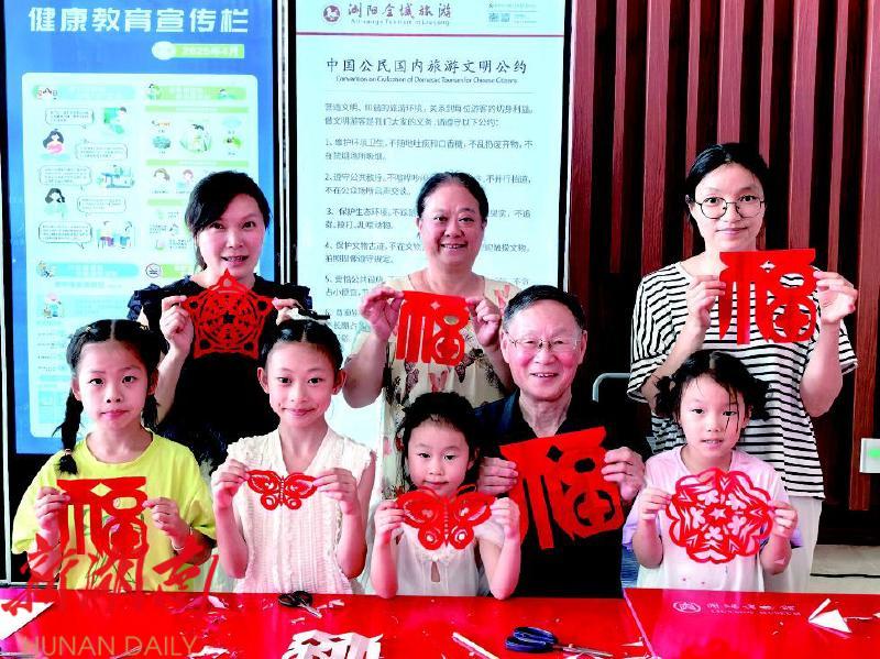 校园也成为非遗传承的沃土,皮影戏、夏布制作、剪纸等非遗课堂陆续走进浏阳中小学。吉的堡幼儿园的萌娃们化身城市翻译官,用英语推介浏阳烟花、天马山豆豉、皮影戏;在金沙路小学,“冰心儿童图书奖”获得者康沁芯博士以《万千非遗化成书》为题作主题讲座,孩子们拿起绘画工具,在画纸上描绘烟花之美。