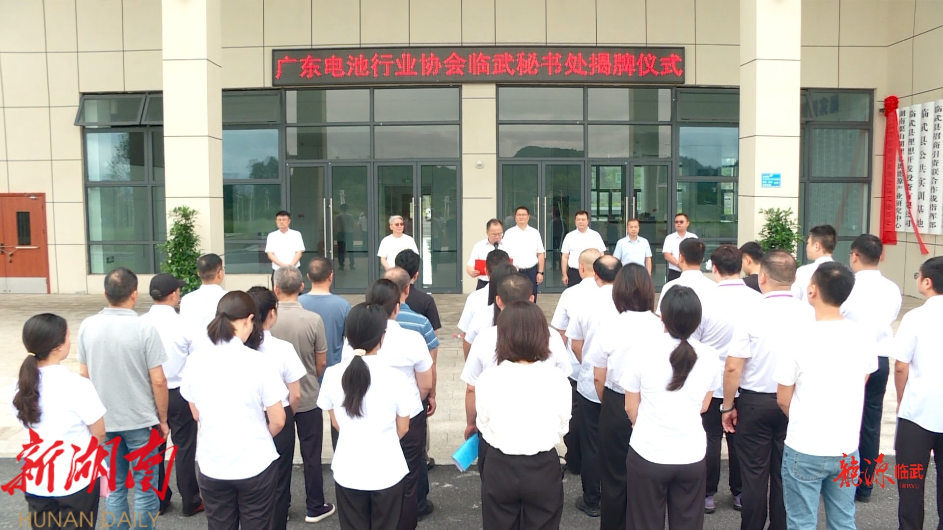 县领导王雄、廖小勇,临武高新技术产业开发区党工委书记陈海斌;广东省电池行业协会执行会长汤欣平,秘书长唐长江,常务副会长石尚引参加揭牌仪式。