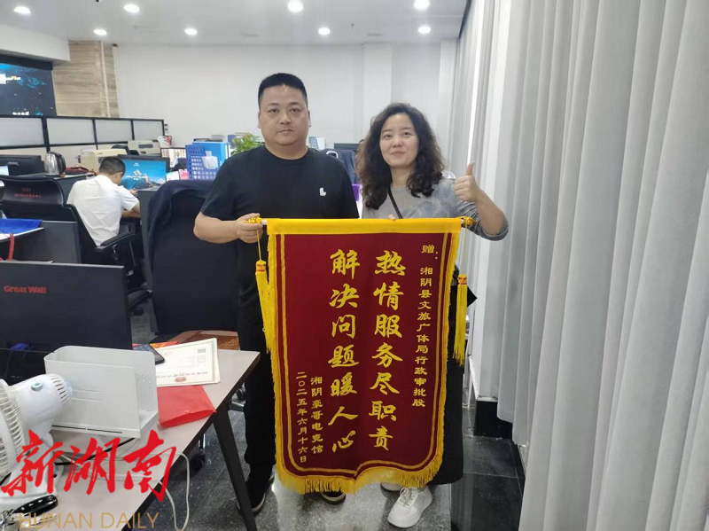 湘阴县文旅广体局负责人表示,将以此次获赠锦旗为契机,继续聚焦企业和群众需求,以更饱满的热情、更严谨的态度、更高效的服务,提供优质便捷的政务服务,助力湘阴县文旅事业高质量发展。