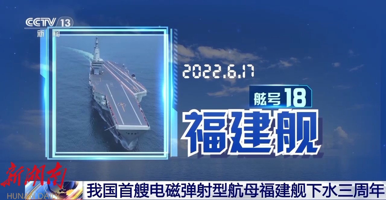 2022年6月17日,福建舰下水,命名为福建舰,舷号18。