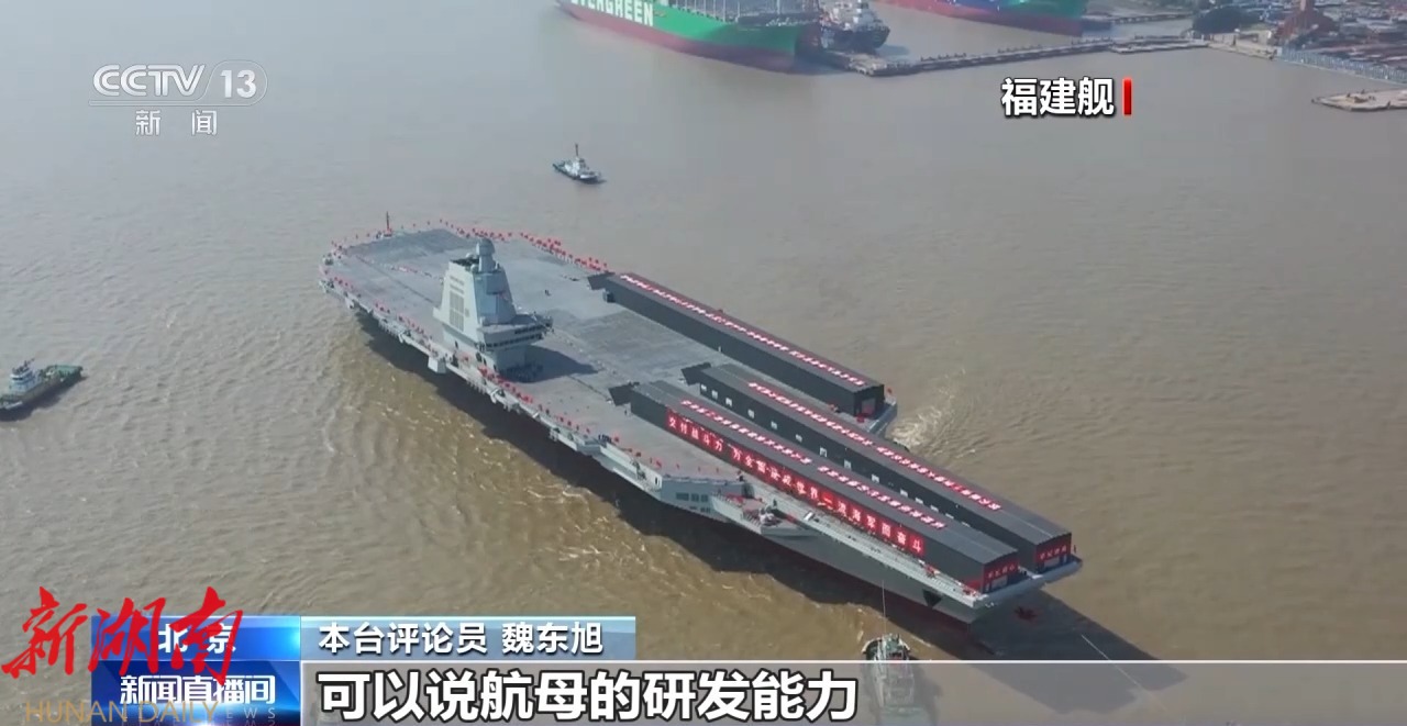 本台评论员魏东旭: 航母福建舰捷报频传,海上测试工作进展得非常顺利,预测在今年可以服役。