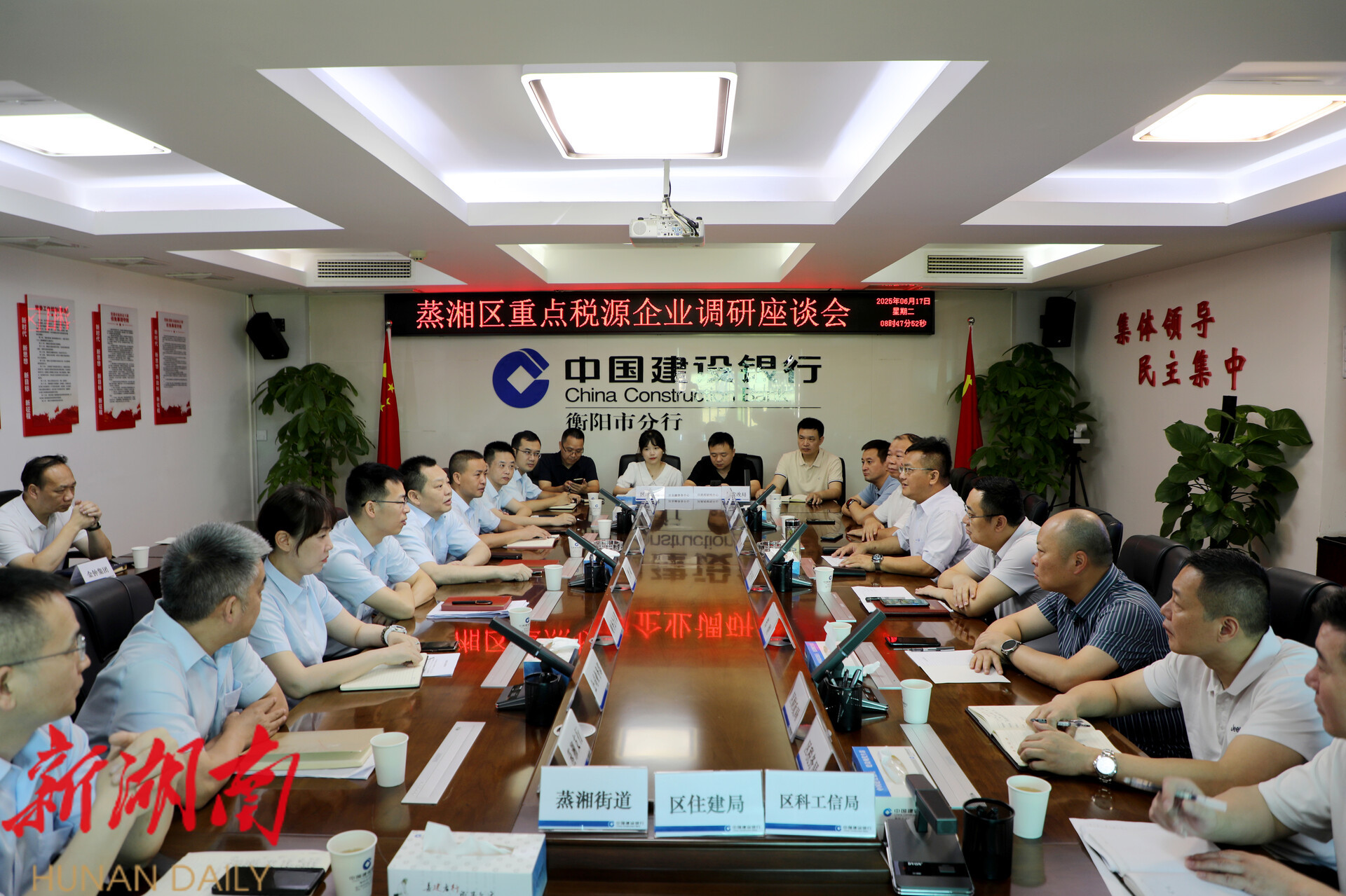 李健一行来到中国建设银行衡阳市分行,与企业负责人深入交谈,并就有关事项探讨具体举措和可行建议。李健对中国建设银行衡阳市分行长期以来支持蒸湘区经济社会高质量发展表示感谢,并希望建行一如既往支持蒸湘发展,在经济发展、民生保障等领域持续加大金融支持力度,进一步研判政策、打通通道;加快市场转型,加强金融政策与财政政策、产业政策的协同配合,有力有效维护金融安全,推动企业高质量发展。