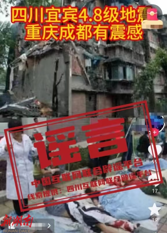 谣言:四川宜宾珙县4.8级地震导致多人伤亡?