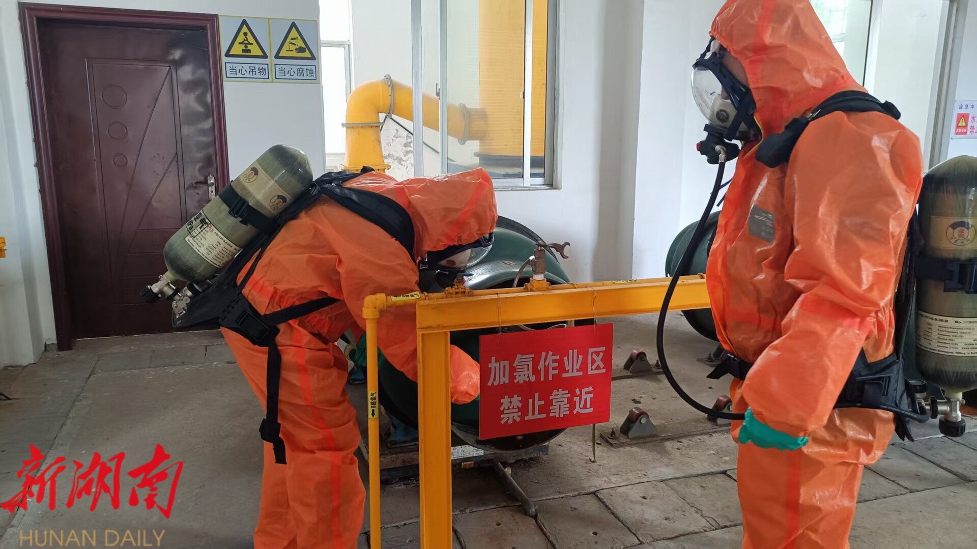 湖南日报·新湖南客户端6月18日讯(通讯员 朱正波)6月17日,永兴县自来水公司在开陡坳水厂开展氯气泄漏应急实战演练,提升危险化学品事故处置能力,守护城市供水生命线。