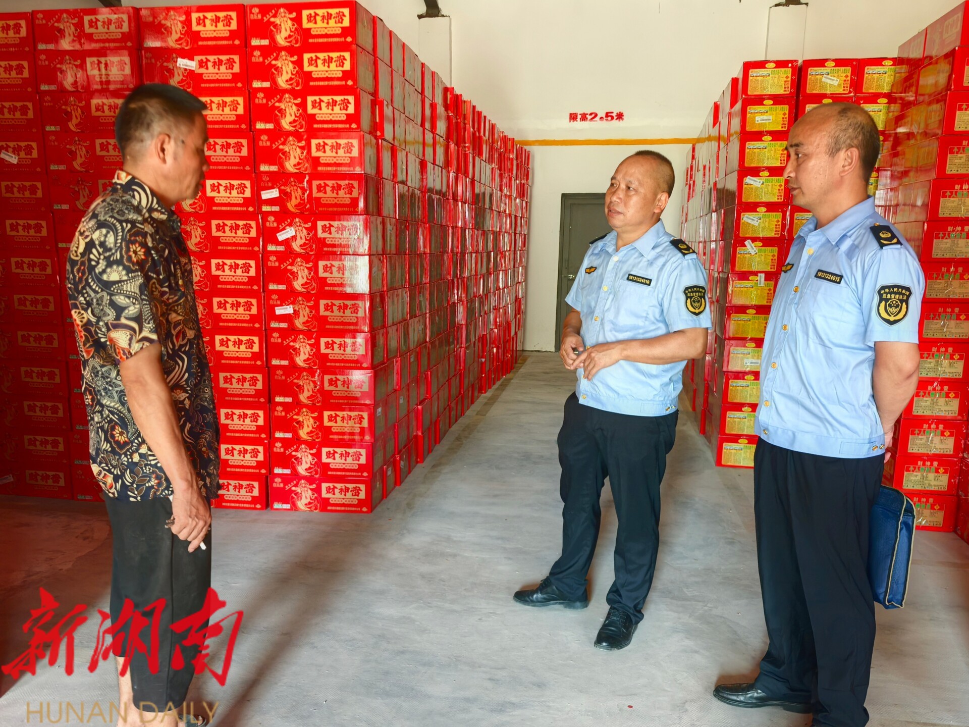 执法人员对烟花爆竹零售店进行相关检查(周悦伊 摄)