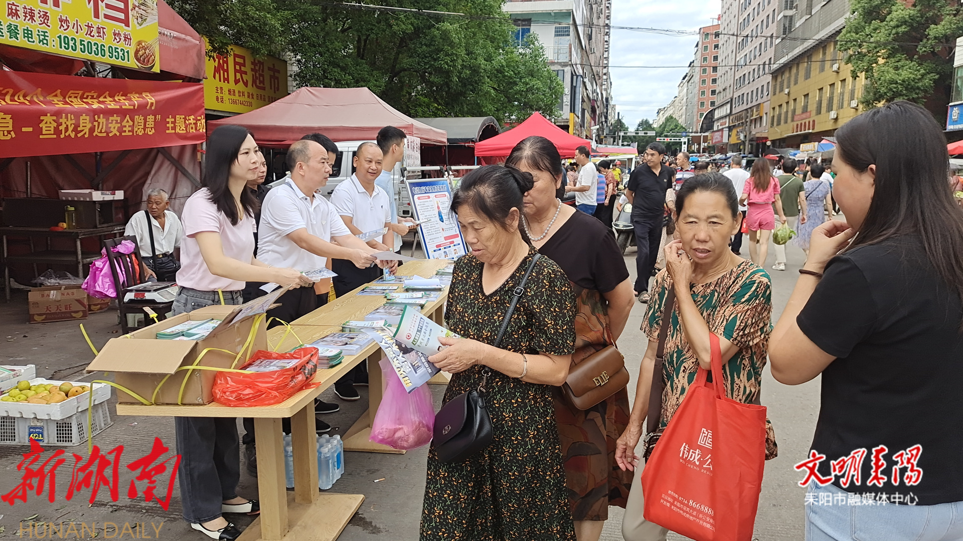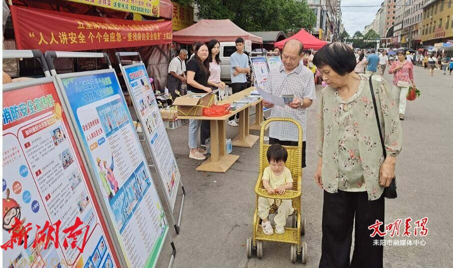 耒阳融媒6月17日讯(记者 江维东) 6月17日,耒阳市五里牌街道紧扣“安全生产月”主题,在金华北路蓝天市场开展道路交通安全宣传活动,吸引众多商户与市民参与。