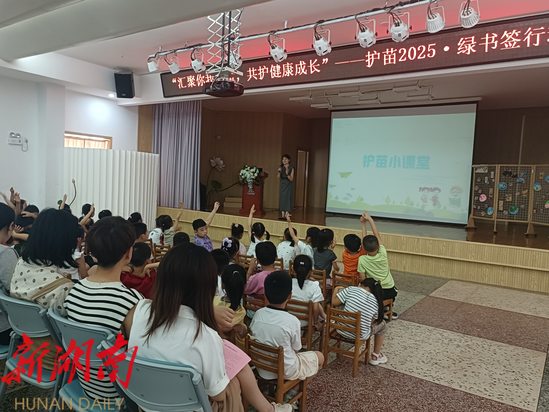 湖南日报·新湖南客户端6月18日讯(通讯员 唐钰慧)为持续广泛宣传护苗2025•绿书签行动”,助力少年儿童健康成长,抵制有害出版物和信息,6月18日上午,由开福区委宣传部指导,开福区望麓园街道荷花池社区党委、长沙市人民政府机关荷花幼儿园、望麓园街道荷花池社区综合文化中心联合主办,广东金桥百信(长沙)律师事务所协办的“汇聚你我力量,共护健康成长”护苗行动主题活动在荷花幼儿园四楼礼堂举行。