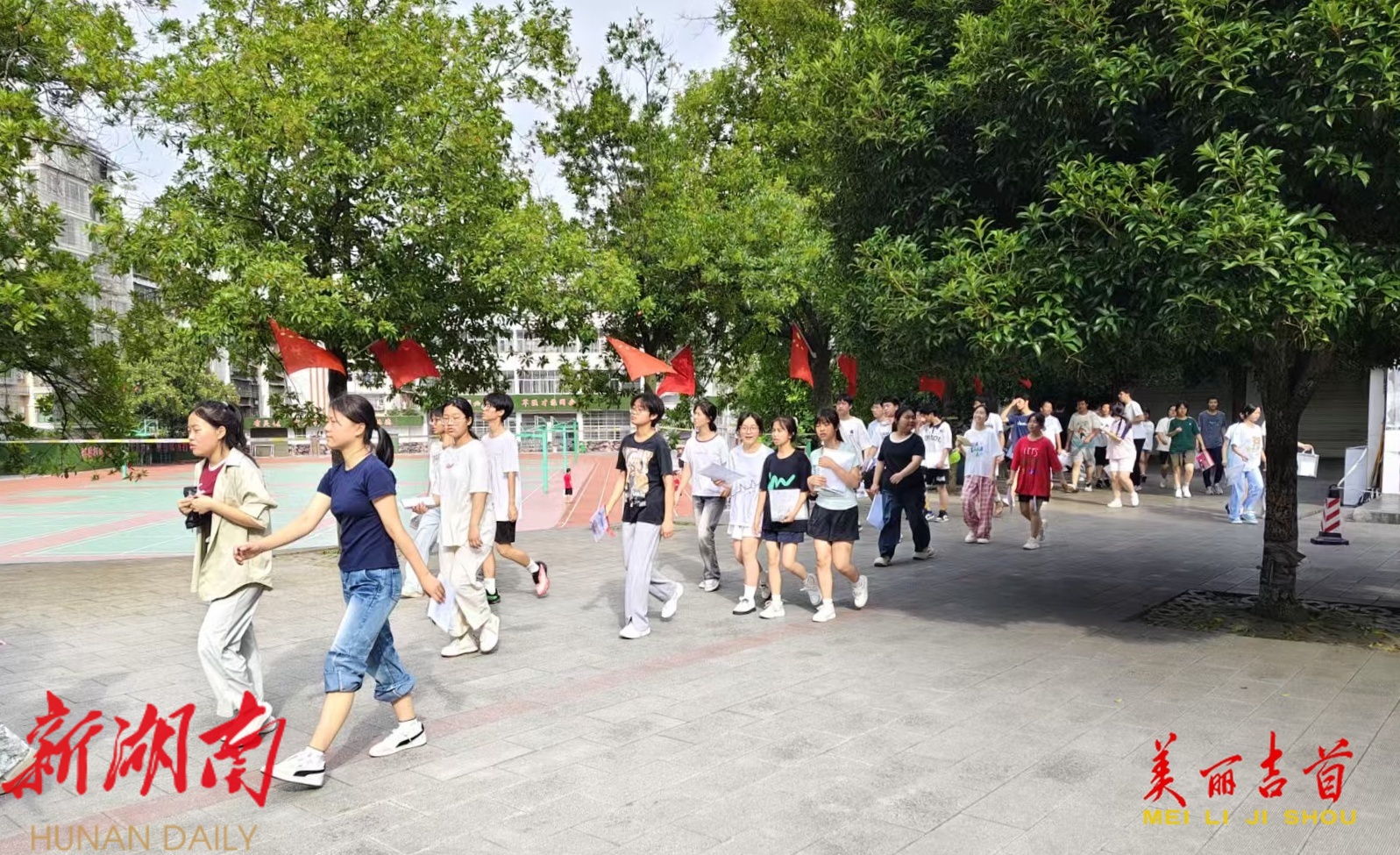 在吉首地区七个考点,前来参加考试的学生们在老师的带领下整齐列队,迎接即将到来的考试。在铃声敲响后,考生分两个入口有序通过安检,进入考场。考场外的老师们也纷纷送上祝福。