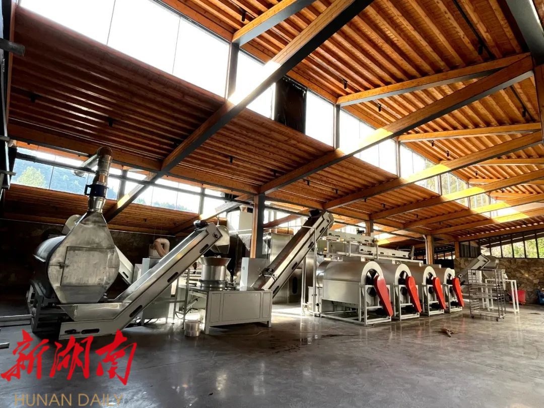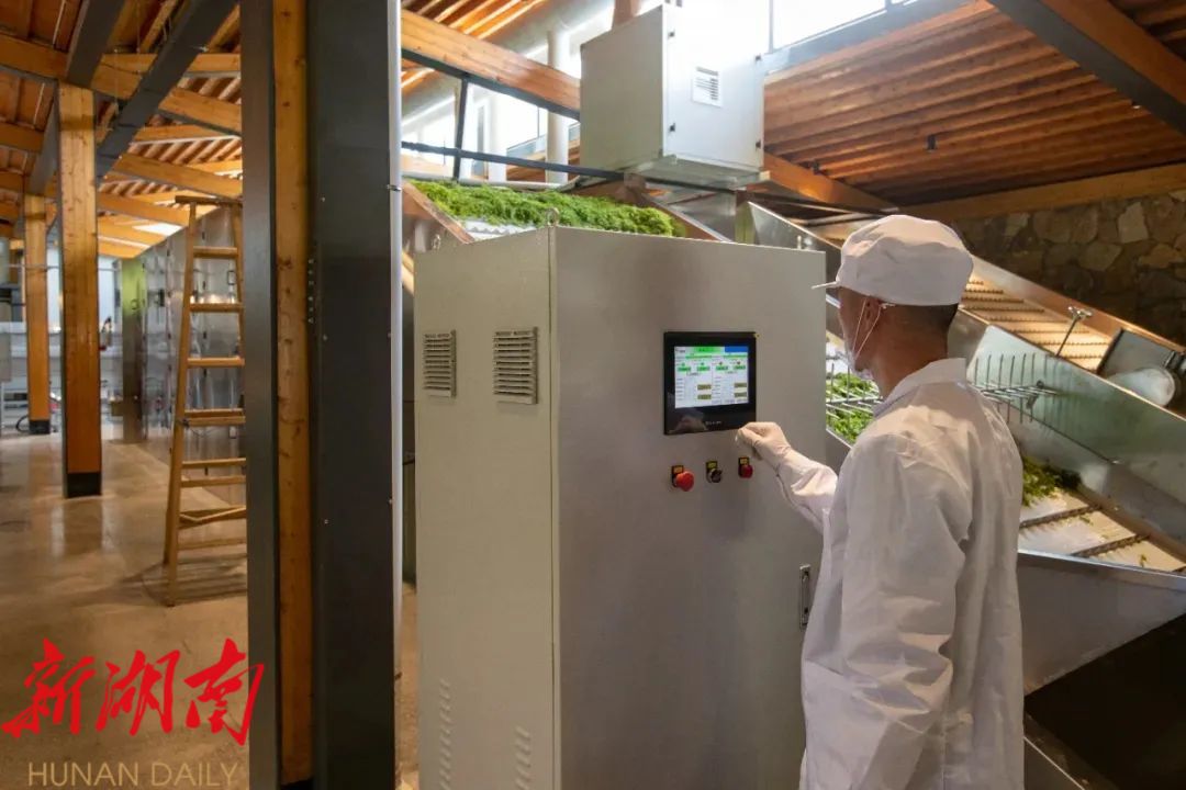 记者了解到,该茶园不仅引进了张家界首条专业化、数智化的莓茶生产线,年产能高达26万斤,可满足4000亩莓茶园的加工需求,还注重产品质量与创新,引入静电除杂和有氧发酵工艺,提升了生产效率,进一步保障了茶叶的品质和口感。