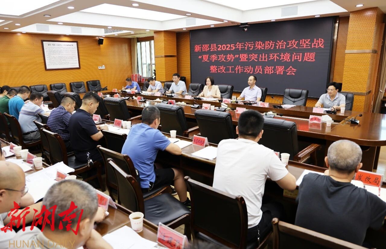 新新邵客户端6月18日讯(记者 何雯 刘丈国)6月17日下午,新邵县召开2025年污染防治攻坚战“夏季攻势”暨突出环境问题整改工作动员部署会。县委书记黄海蓉出席并讲话,县委副书记、县长谢小军主持会议。县领导蒋命贤、周湘平、刘焕、刘慎出席。