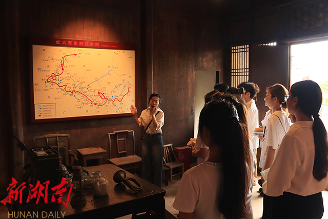 在红六军团指挥部旧址,青年学子聆听“半截象牙筷”的感人故事,深刻感悟红军与人民的鱼水深情。宣讲团成员尹思结合基层工作经历,分享心得体会:“要将人民放在心中最高位置,在基层一线磨砺本领、奉献青春。”