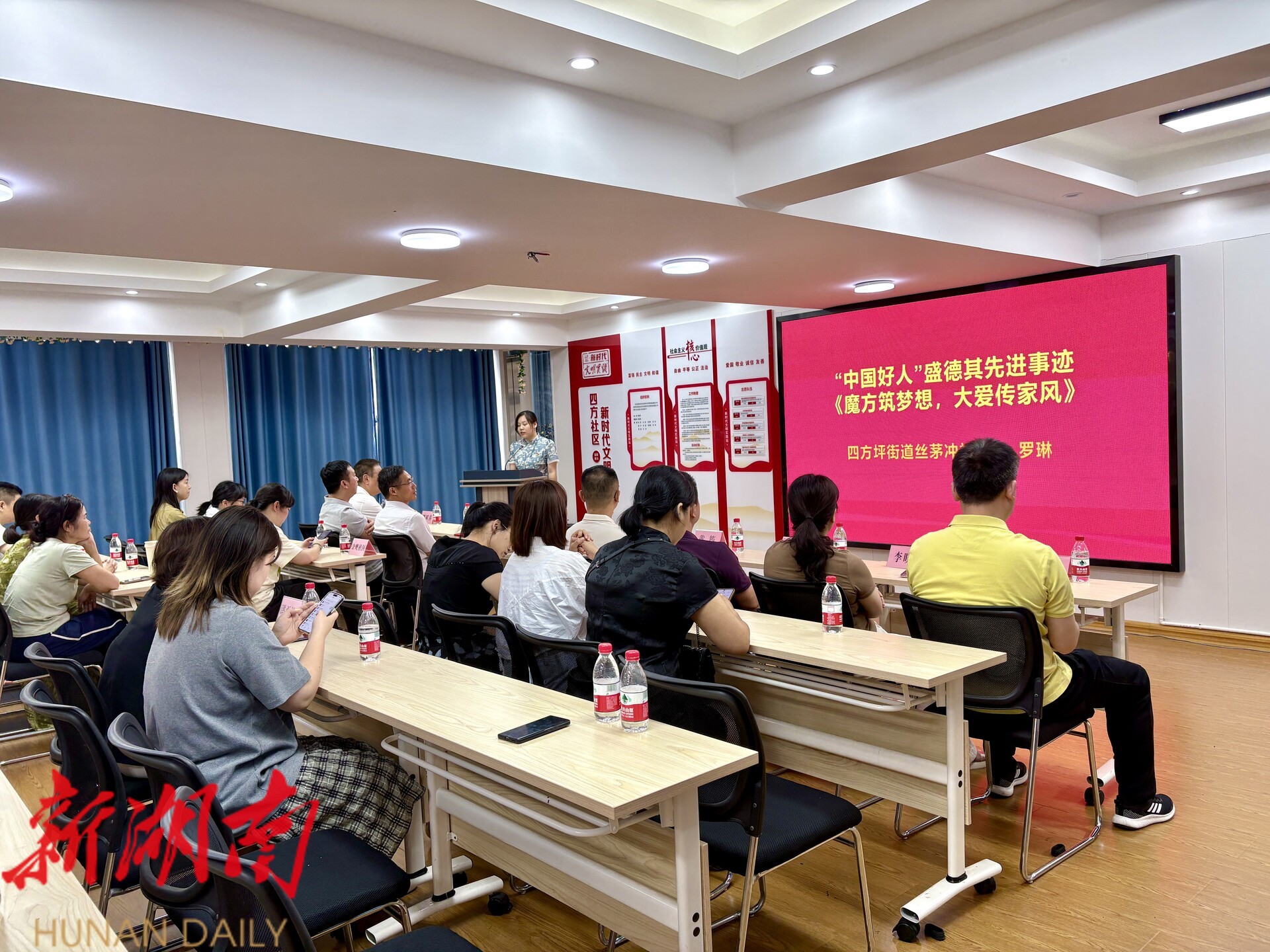 活动精心设计三大互动板块,沉浸式传递“廉”能量。在“聆听清廉故事”环节中,丝茅冲社区罗琳讲述“中国好人”盛德其以小小魔方传递优良家风的感人事迹;洪西社区刘芬分享“湖南好人”王心亮诚信经营、热心公益的动人故事。先进典型的清廉品格引发全场共鸣,掌声阵阵。