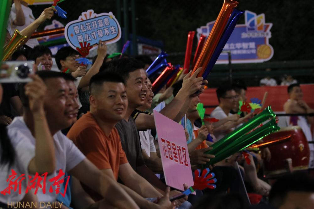 当晚,社区篮球赛首战在韶溪社区和花园里社区之间展开,由居民组成的两支球队你来我往,互不相让,突破、传球、投篮,在球场上展开激烈角逐。最终,韶溪社区以65:64险胜,拿下开门红。第二场比赛由大坪社区对阵桥北社区,最终大坪社区以70:61战胜桥北社区。