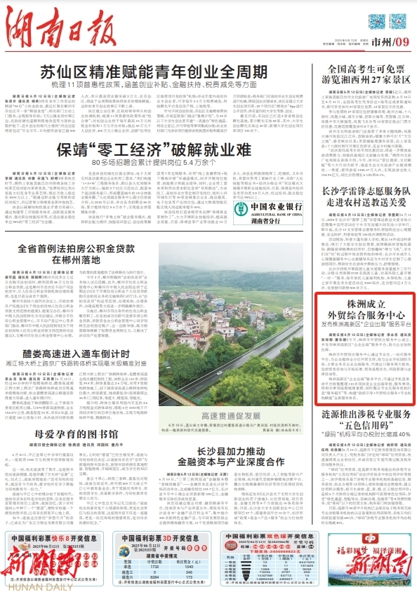 湖南日报丨株洲成立外贸综合服务中心 发布株洲高新区“企业出海”服务平台