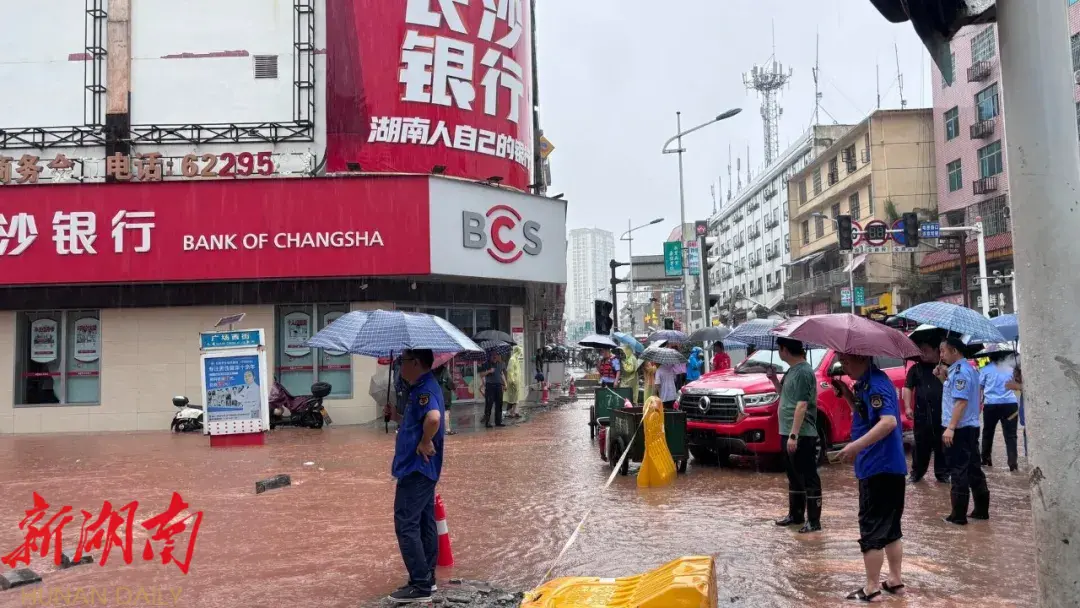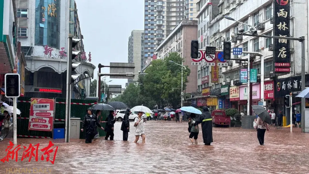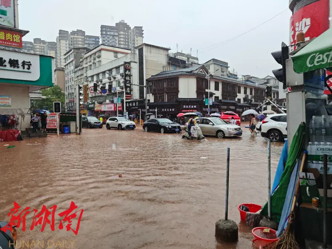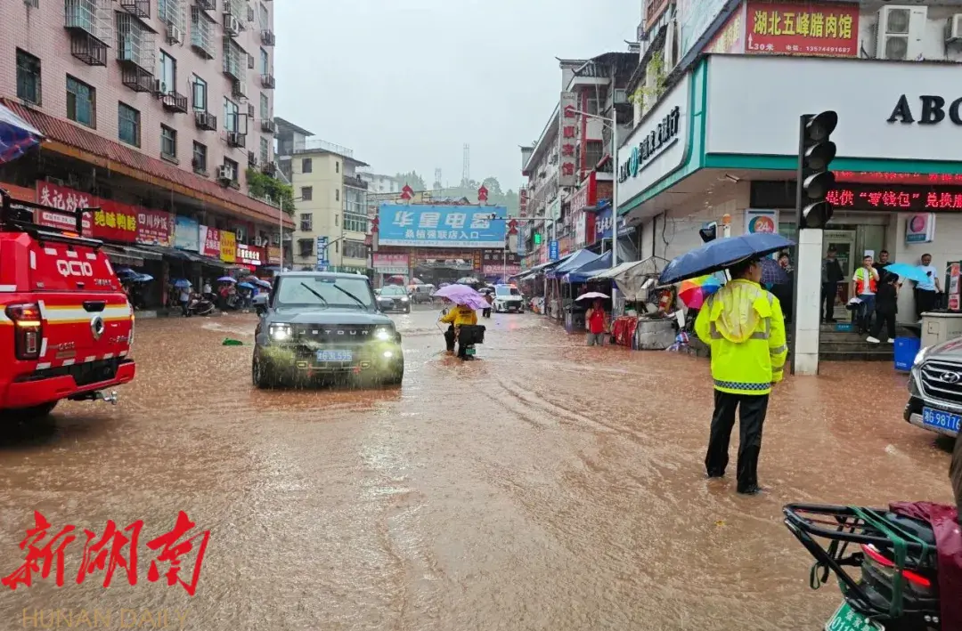 桑植城区低洼处出现积水 多部门紧急转移群众 疏导交通