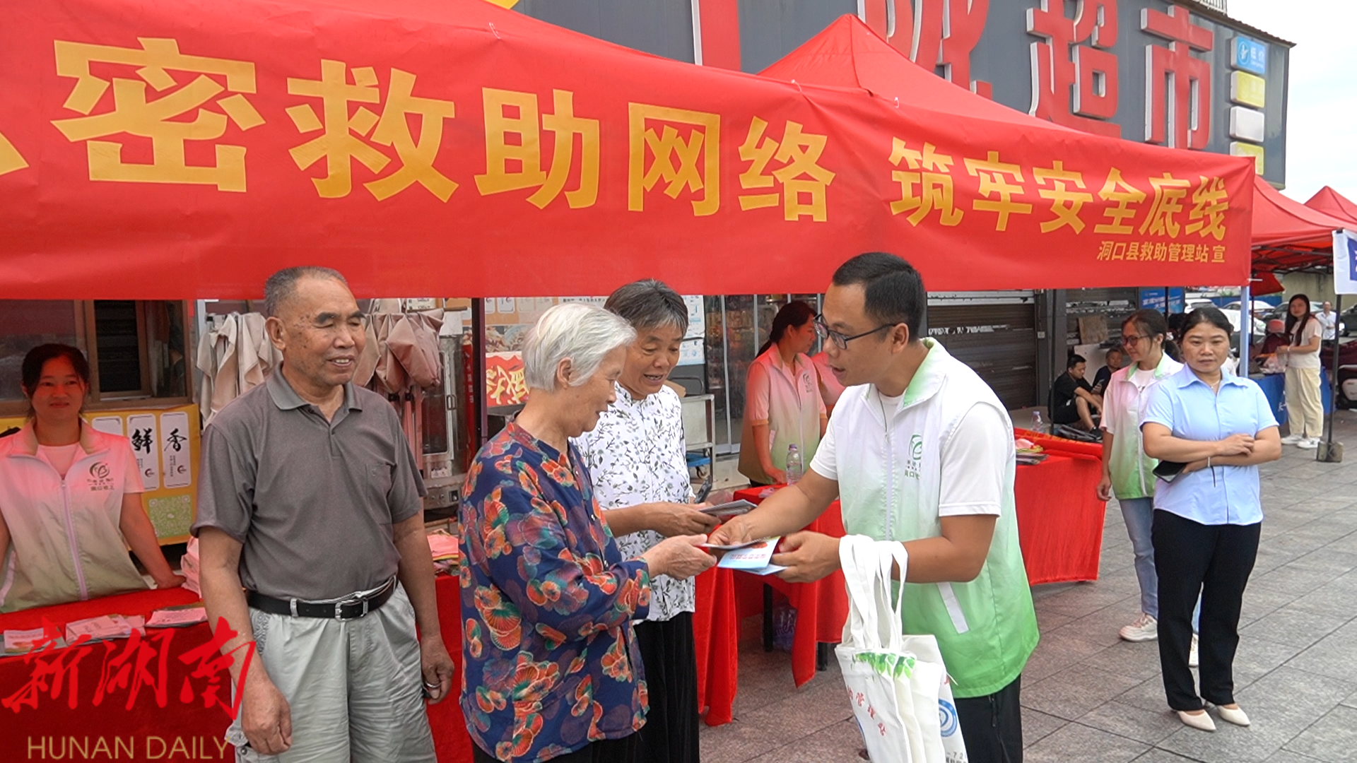 洞口融媒6月19日讯(记者:江京晟 通讯员 :张戈 曾平剑 ) 今天是 第十 三 个全国救助管理机构 “开放日”, 为提高社会公众对救助政策的知晓度,展示救助工作成效,动员社会力量参与救助服务 , 洞口县民政局组织县救助管理站、县 民政 社工站与社会志愿者在雪峰 街道阳光社区 开展 “ 织密救助网络 筑牢安全底线 ”主题宣传活动。