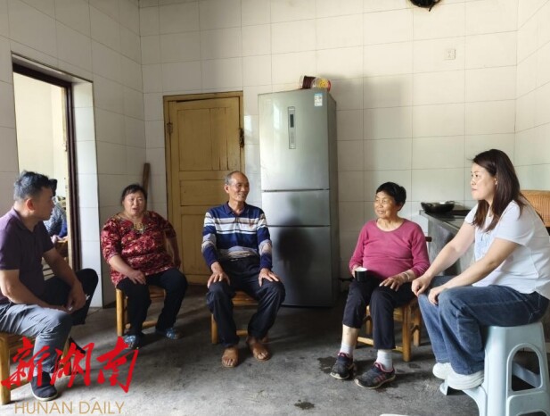 ▲西冲山村“比邻星”获评邻长成海朋(中)入户宣传政策。
