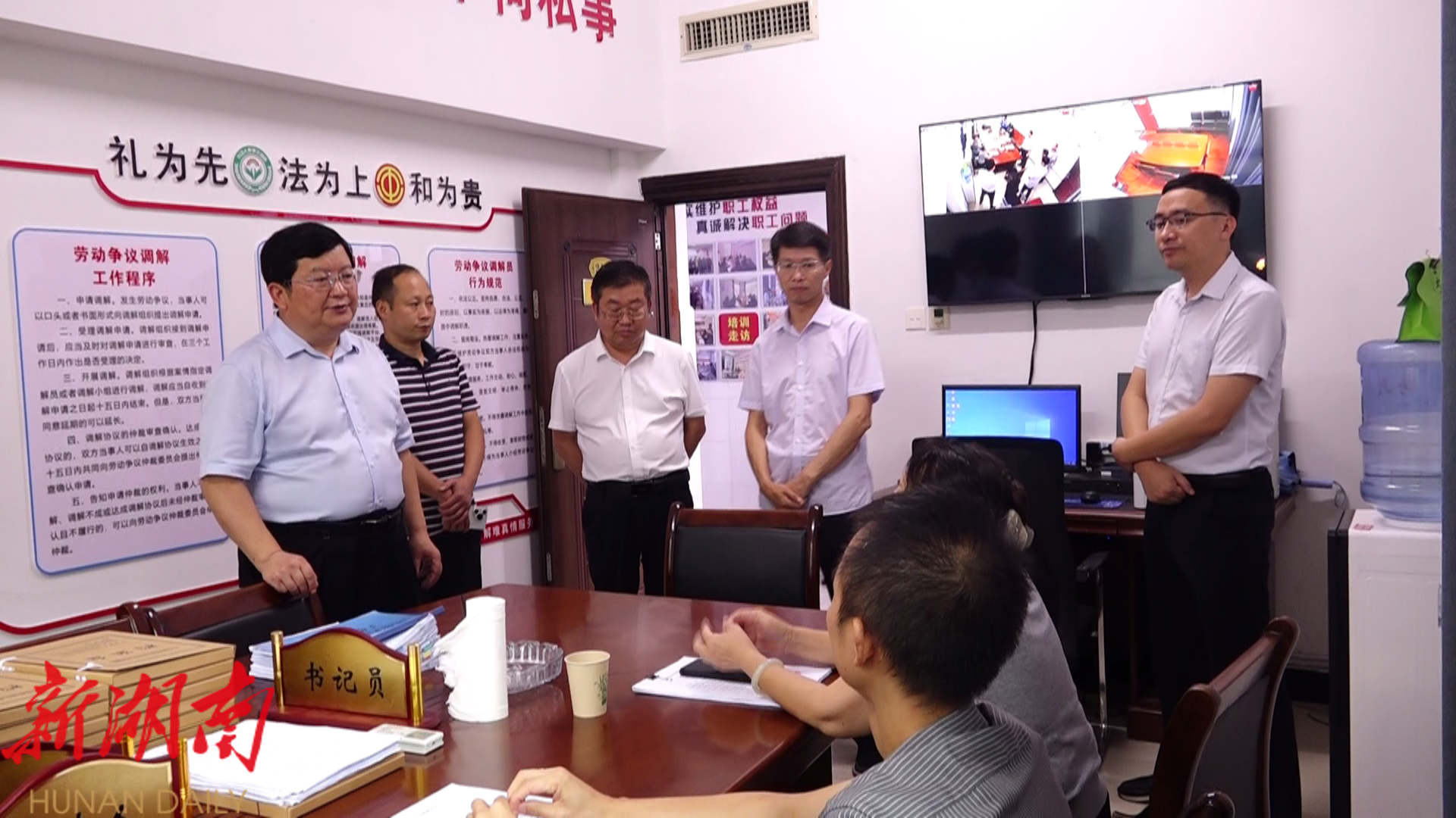 在古丈县人社局“法院+工会+人社”劳动争议仲裁调解室,黎新松观听取了相关负责人关于工作机制、队伍建设和工作成效的汇报。他对调解室在维护职工合法权益、构建和谐劳动关系方面所做的工作表示认可,并鼓励继续探索创新,提高劳动争议处理效率,为职工提供更优质、高效的服务。