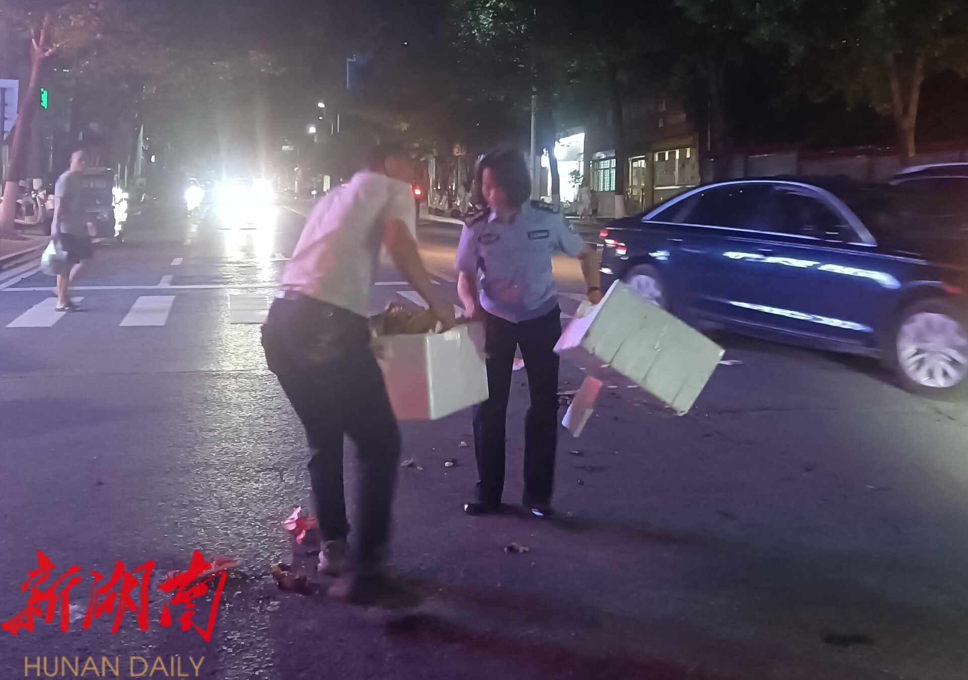 湖南日报·新湖南客户端6月19日讯(通讯员 朱正波)近日,永兴县自来水公司在开展义务巡逻活动时,发现沙子江与惠民路交叉口马路上散落了很多泡沫箱及垃圾,义务巡逻队员迅速行动,指挥交通,引导车辆、行人有序通行;徒手搬运箱体、清扫路面,仅用5分钟便让受阻道路恢复畅通,获得了大家一致点赞。