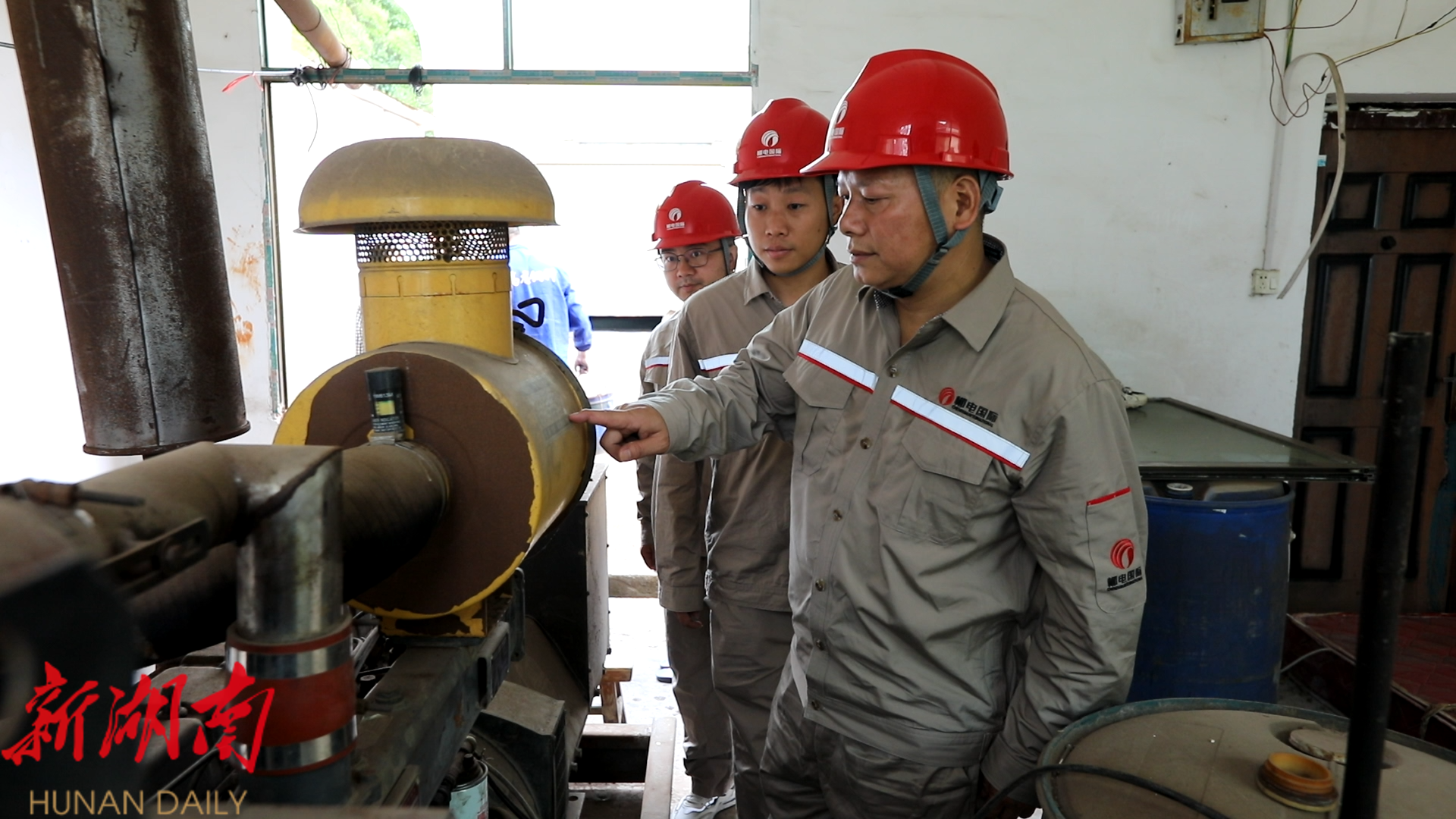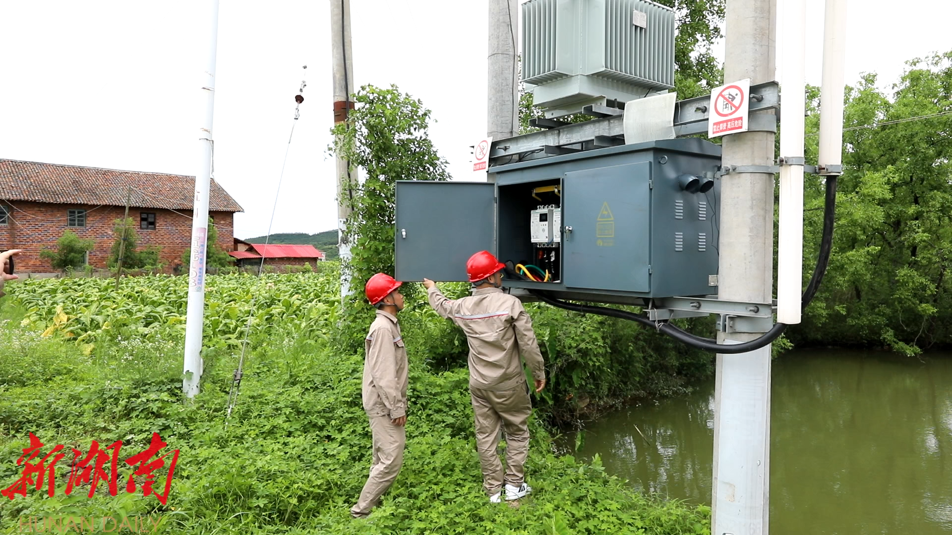 在鲤鱼塘镇申明亭村,郴电国际永兴分公司的工作人员正在检查烤烟房配电表、电力开关闸门、输电线电缆接头等电力设施的日常运行维护情况,同时对烤烟房供电线路、变压器、配电箱等设备进行全面排查,及时消除安全隐患,确保烟叶烘烤高峰期电力设施能平稳安全运行。