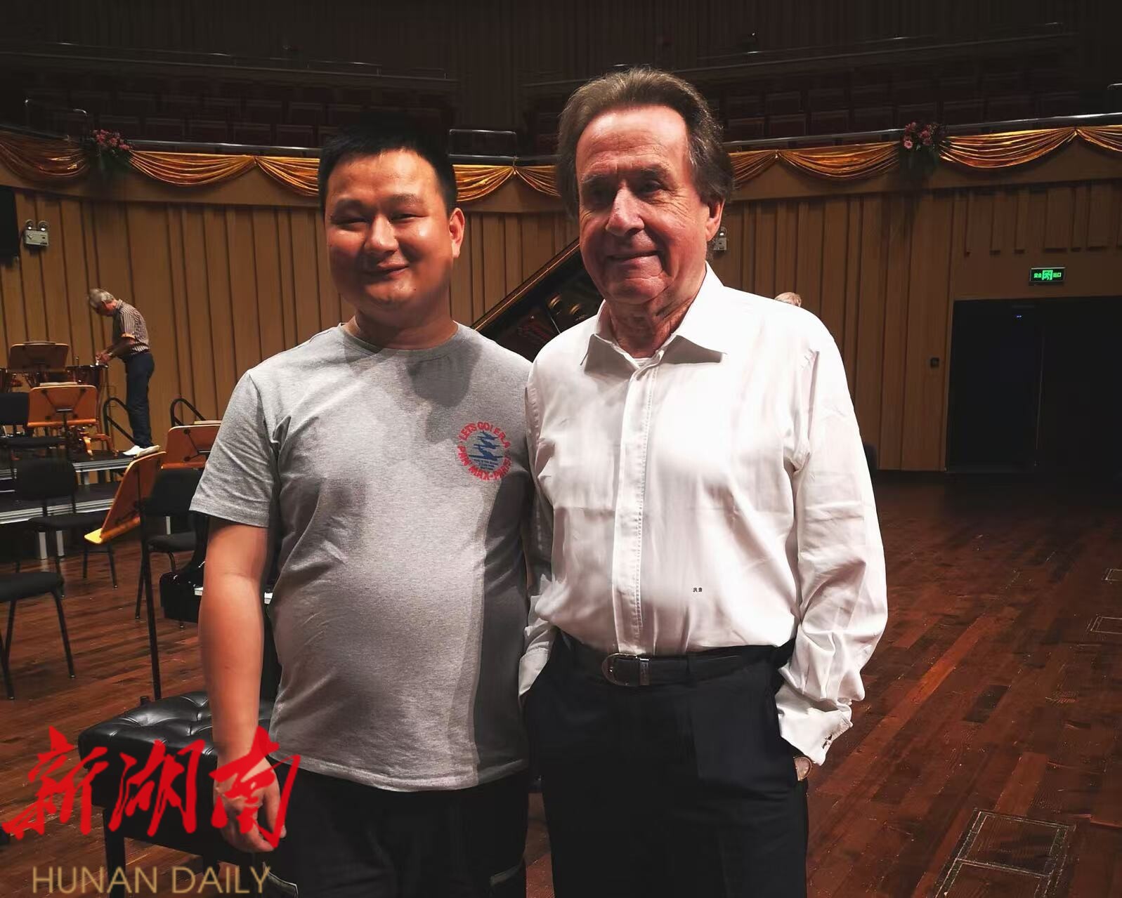 胡冰与钢琴大师布郝宾德合影。