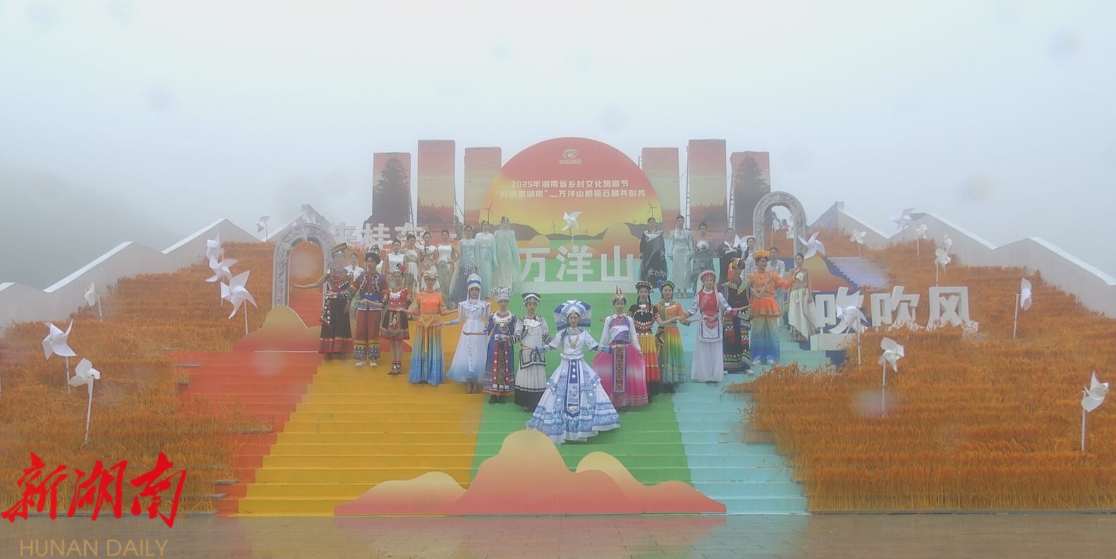 在海拔1 5 00米的 万洋山景区彩虹营地, 上演了精彩的 “村潮看湖南·万洋山避暑云梯共创秀”。模特们接连上演农村新风尚展示秀、湖南少数民族服装秀、避暑清凉风服装秀、田园场景生活秀、大学生创意服装秀,为游客带来一场视觉与文化的时尚盛宴。