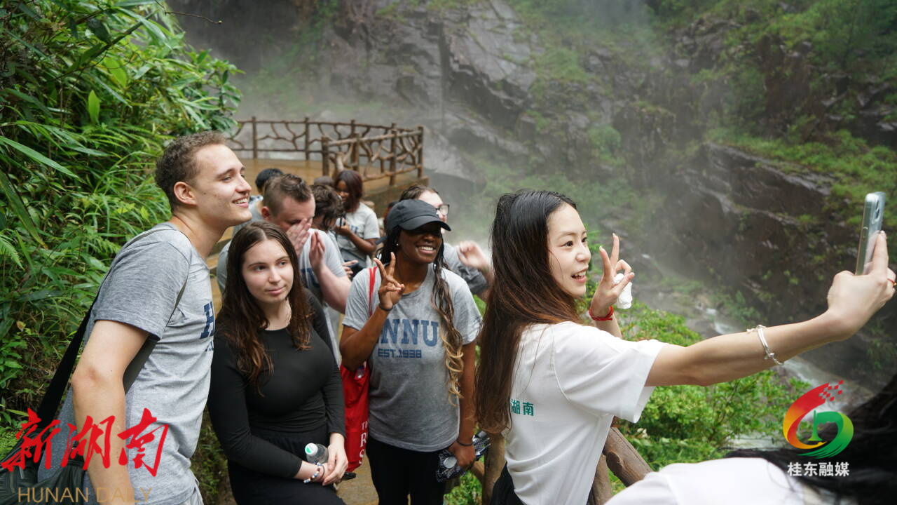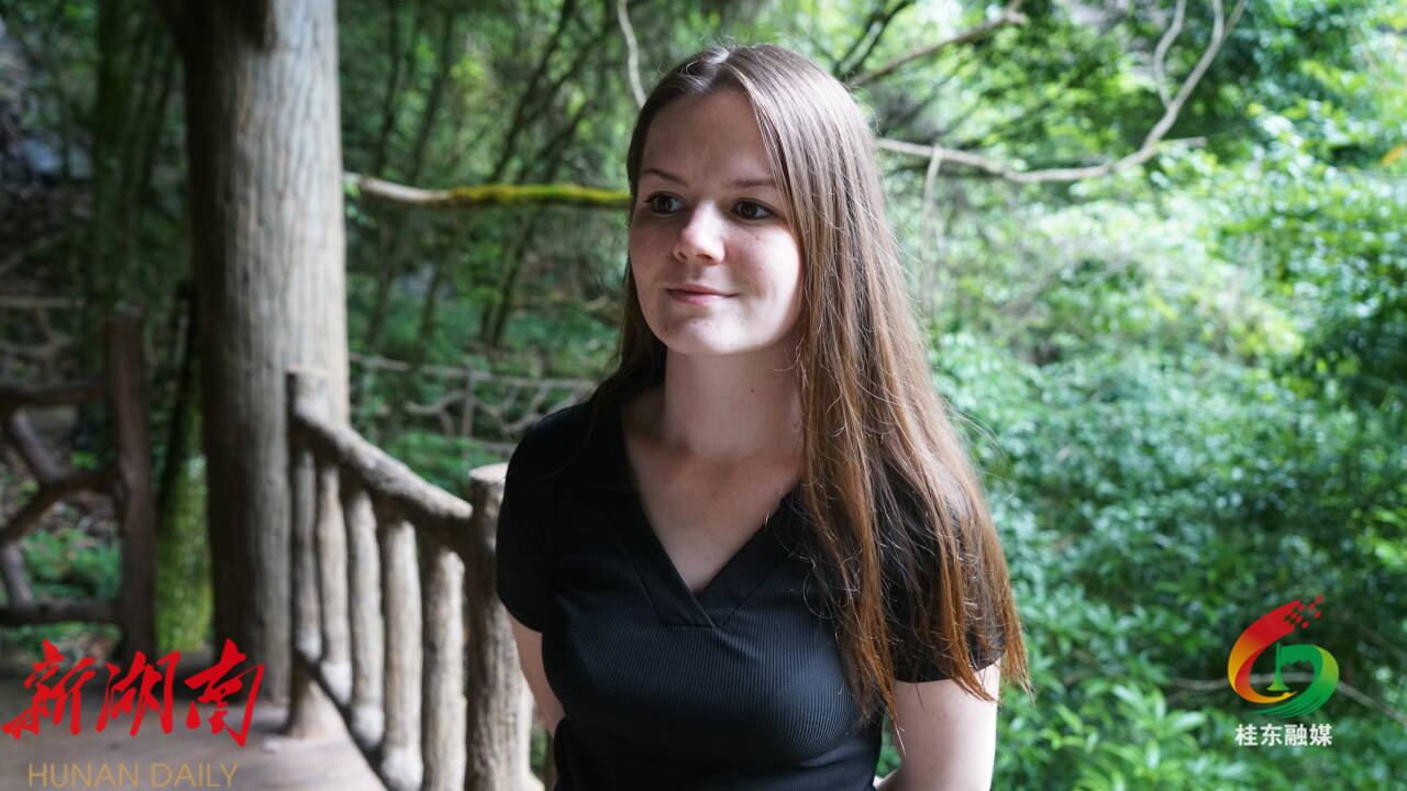 湖南师范大学俄罗斯籍学生梦瑶:龙溪瀑布的景色太震撼了,这里(的)水声、绿树和清新的空气完全打破了城市的喧嚣,让我感到非常放松。