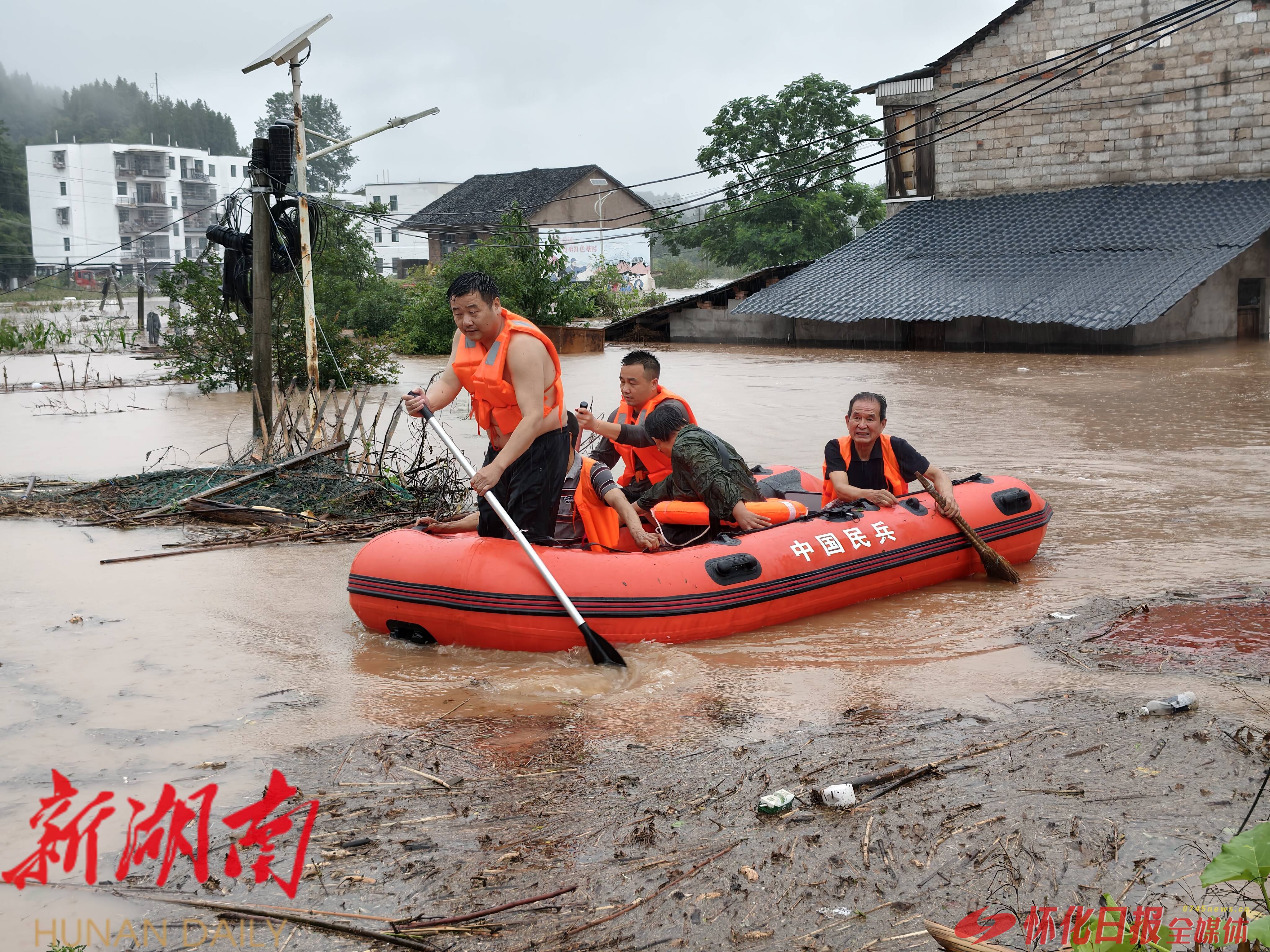 (沅陵县应急部门的救援人员帮助群众转移 )
