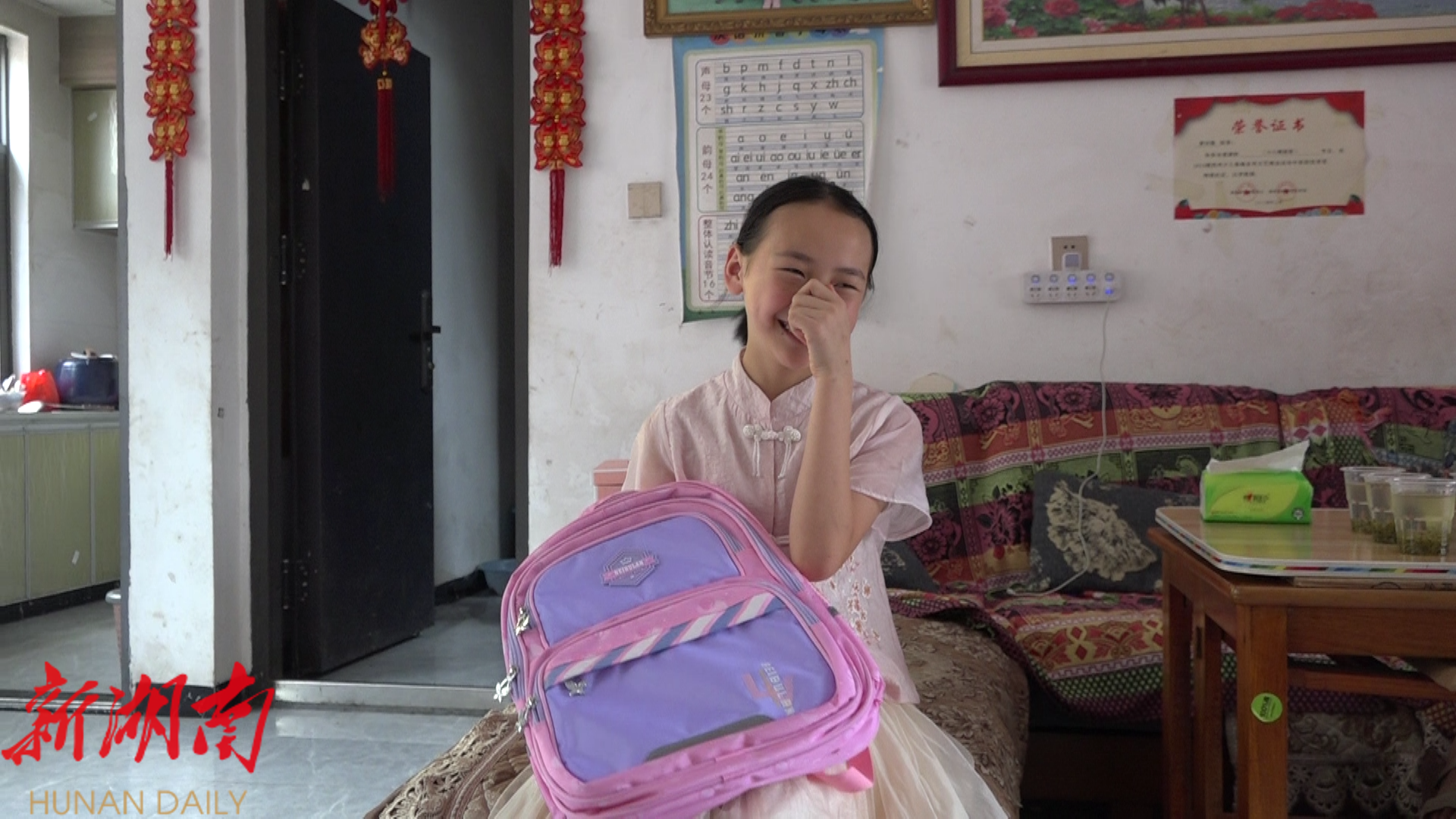 十岁的留守儿童蒙向镜抱着新书包爱不释手,“那天叔叔阿姨们来我们家询问有没有什么心愿,我说了之后,他们很快就带着文具套装来给我了,这是我第一次收到来自陌生人的礼物,真的很感谢。”