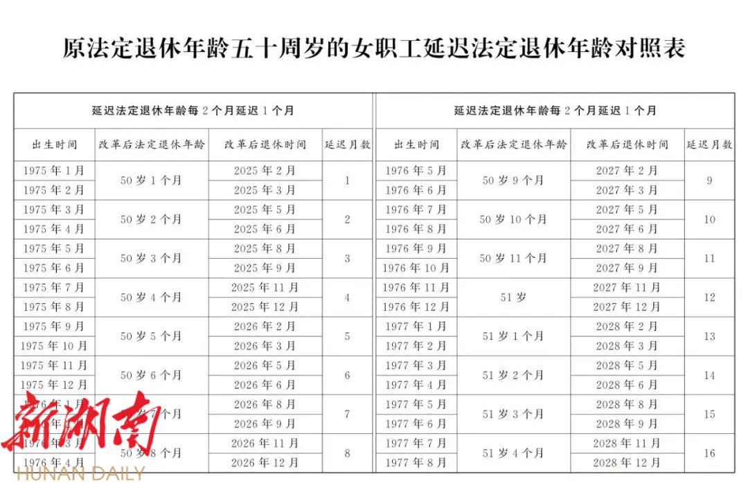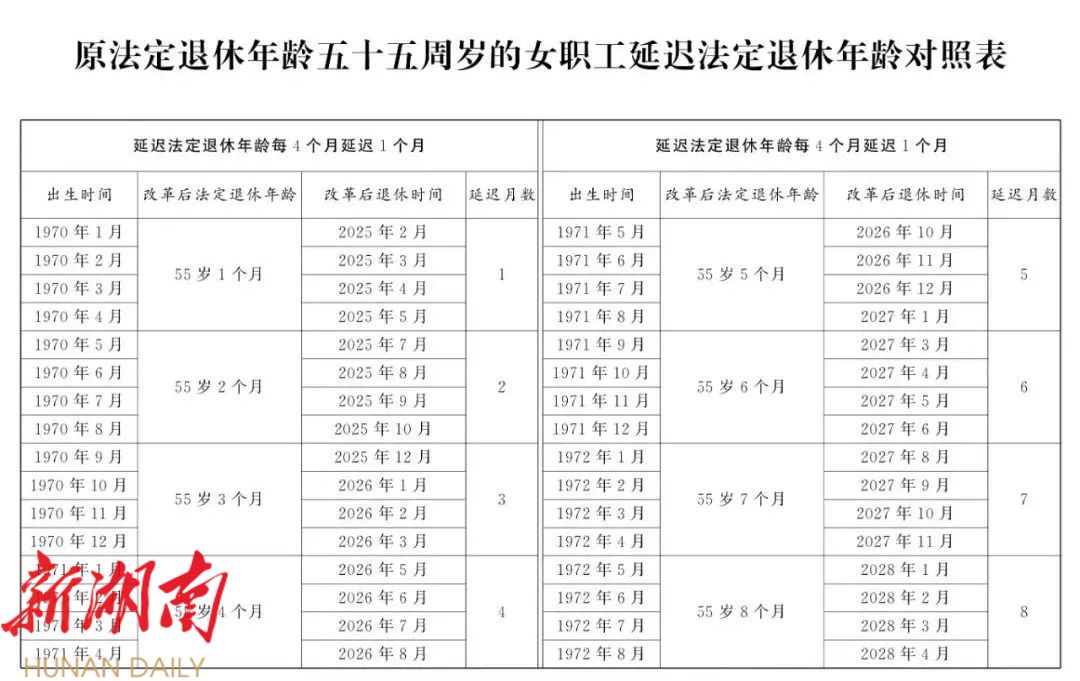 从2025年1月1日起,原法定退休年龄为五十周岁的女职工,法定退休年龄每二个月延迟一个月,逐步延迟至五十五周岁。