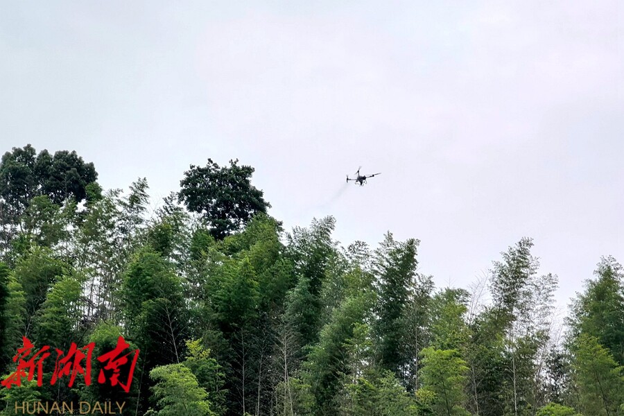 夷望溪镇无人机药物防治黄脊竹蝗竹园村现场
