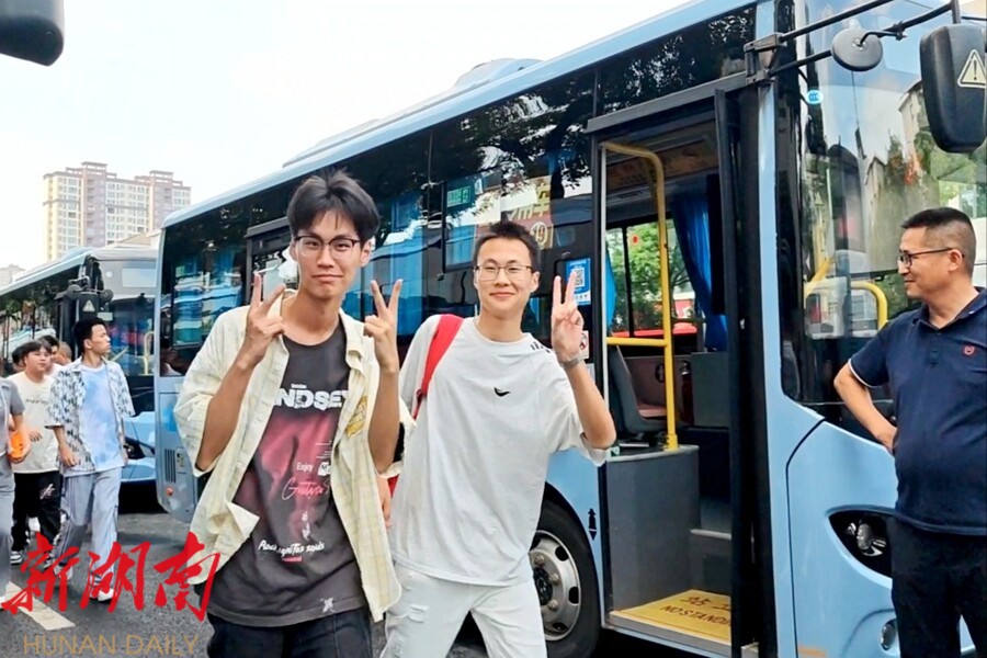 当考生笑着比耶,公交师傅们的守候有了最美的回应
