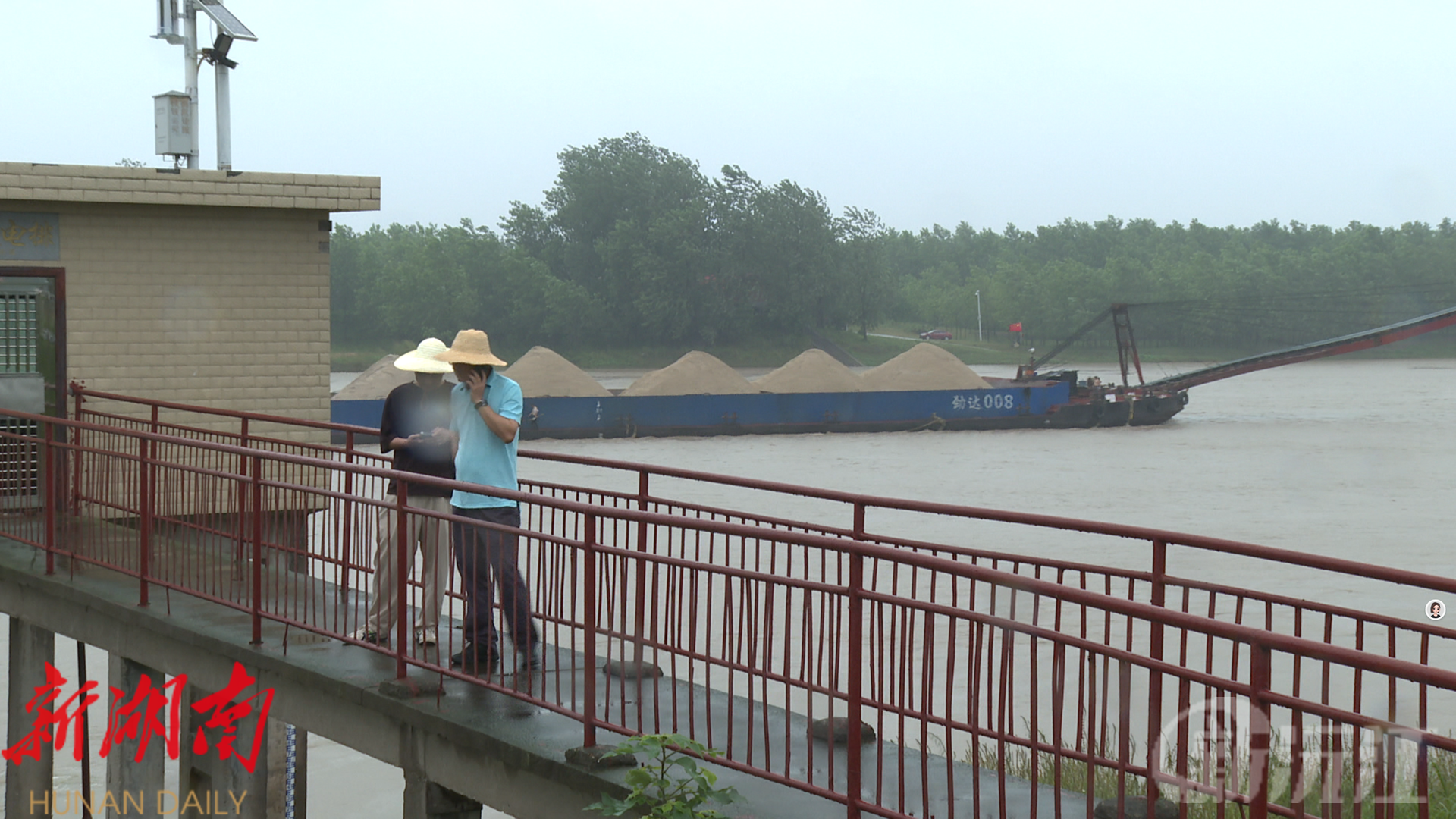 在位于沅江市共华镇的三码头电排,哗哗流水声不断,巨大的排水管道正全力运转,将八形汊河 积水源源不断排出。八形汊河是当地的一处内湖,受强降水影响,目前内湖水位比外湖水位高出近两米,给周边区域带来了较大的防汛压力。