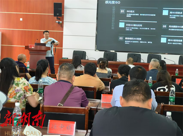 随后,新晃融媒体中心新闻部主任杨钧围绕摄影基础理论、实用构图技巧,以及手机摄影的操作要点等内容,为大家上了一堂“摄影基础知识”,助力通讯员们用镜头更生动地记录新闻瞬间。