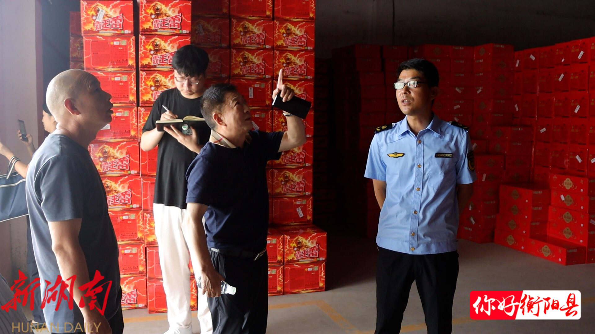执法人员先后前往衡阳明响烟花爆竹有限公司、衡阳县祥富烟花爆竹销售有限公司、衡阳县富翁烟花爆竹批发公司和衡阳县供销社烟花爆竹有限公司四家企业,执法人员与第三方公司专家现场测量储存仓库安全距离、设备间距,排查消防栓等设施。在过程中,发现应急演练方案没有结合实际情况落实,以及消防栓水压不足等问题,当场下达整改通知,并提供消防水泵要根据流量和压力重新选型等解决方案。